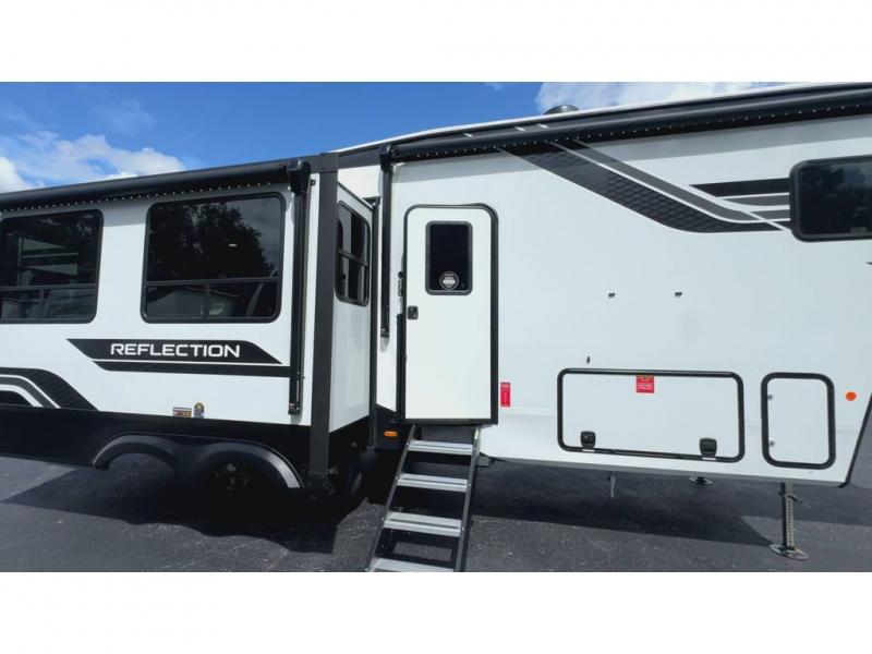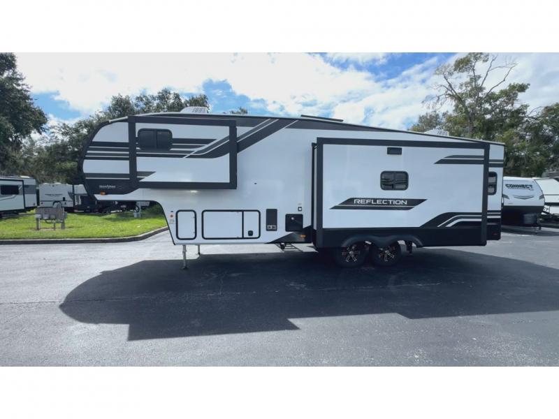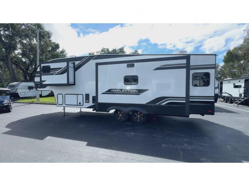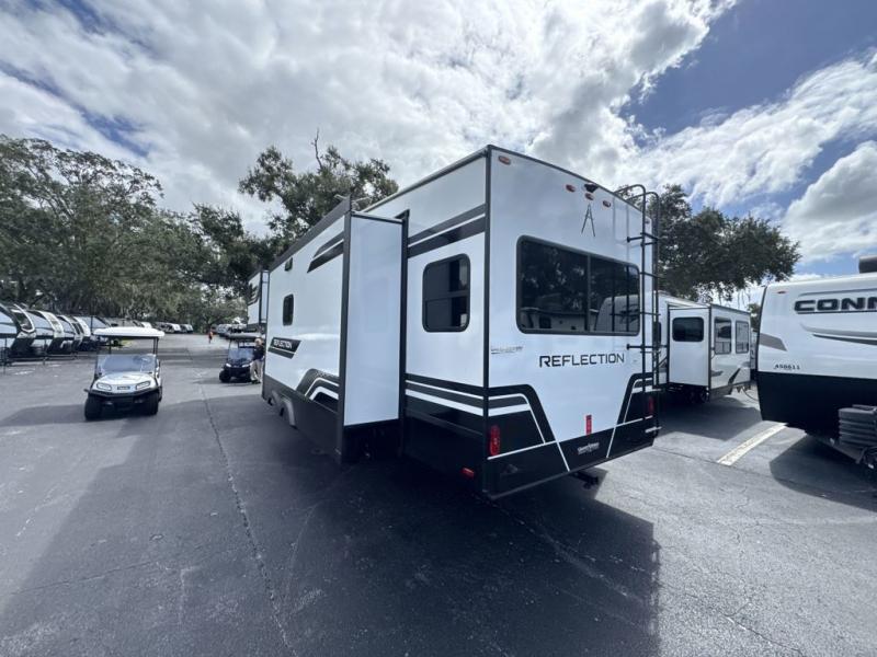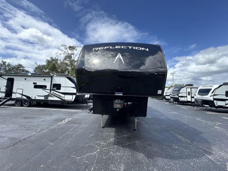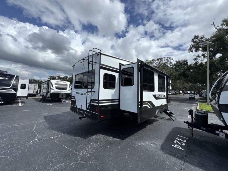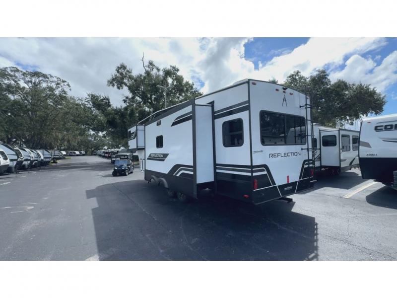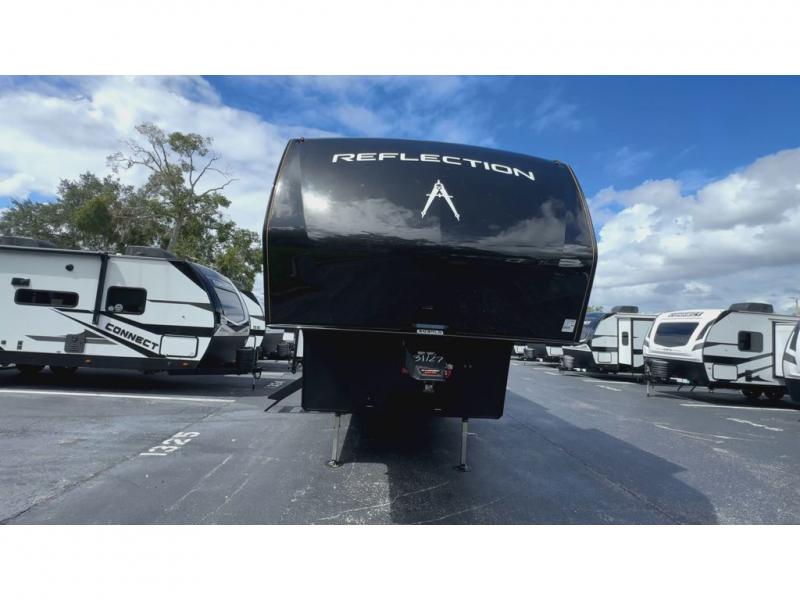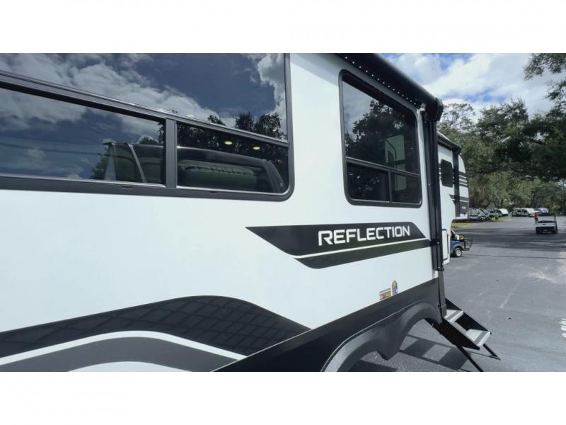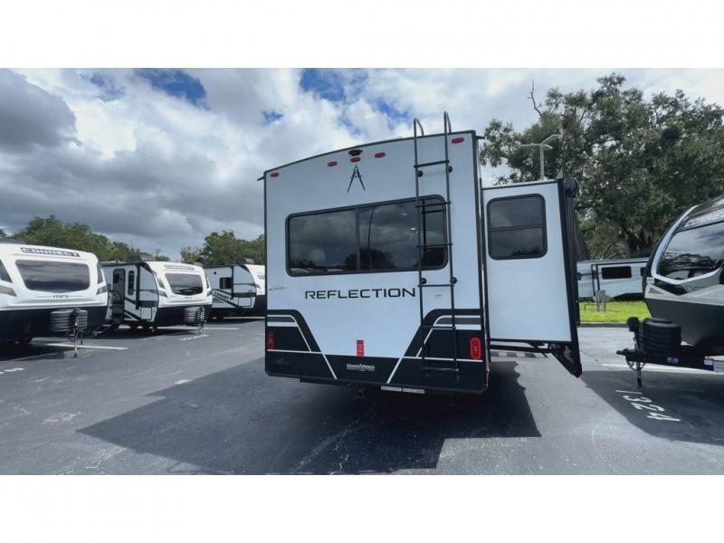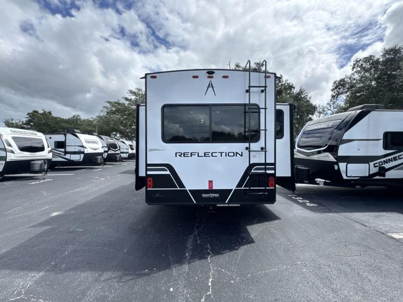 With any Reflection fifth wheel by Grand Design, you will have a solar panel for off-grid camping and a 60 amp charge controller and inverter prep, a Universal All-In-One docking station, unobstructed pass-through storage, and Goodyear Endurance tires. Each is constructed of gel coat exterior sidewalls, residential 5" truss rafters, walk-on roof decking, a fiberglass and radiant foil roof and front cap insulation plus laminated aluminum framed side walls, roof and end walls in slide rooms. Head inside to enjoy residential hardwood cabinet doors, premium Congoleum flooring, a spacious shower with a glass door, and many more comforts!