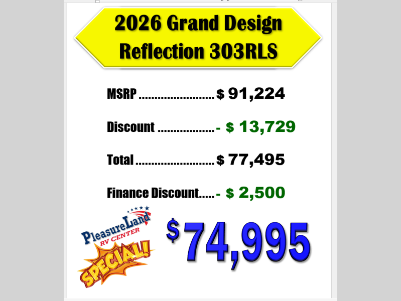 New 2026 Grand Design Reflection 303RLS Fifth Wheel