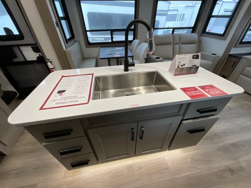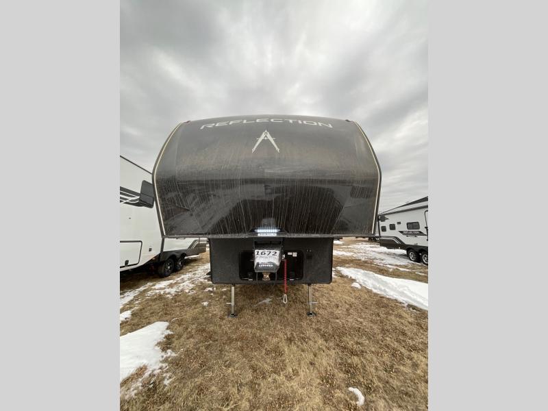 With any Reflection fifth wheel by Grand Design, you will have a solar panel for off-grid camping and a 60 amp charge controller and inverter prep, a Universal All-In-One docking station, unobstructed pass-through storage, and Goodyear Endurance tires. Each is constructed of gel coat exterior sidewalls, residential 5" truss rafters, walk-on roof decking, a fiberglass and radiant foil roof and front cap insulation plus laminated aluminum framed side walls, roof and end walls in slide rooms. Head inside to enjoy residential hardwood cabinet doors, premium Congoleum flooring, a spacious shower with a glass door, and many more comforts!