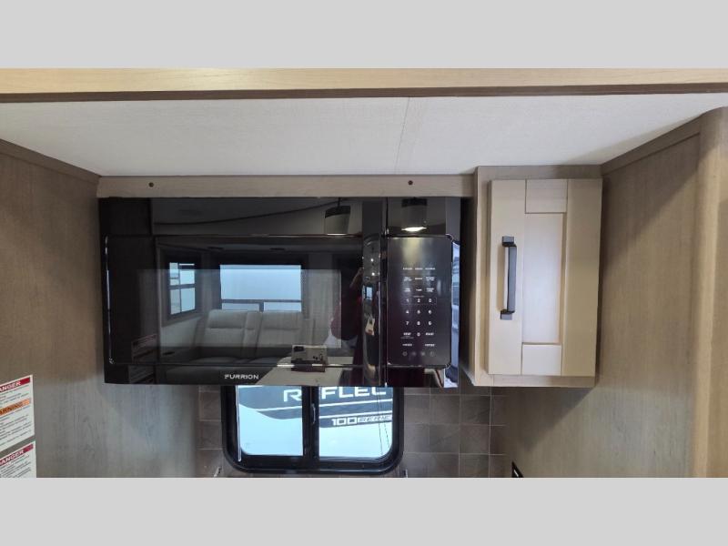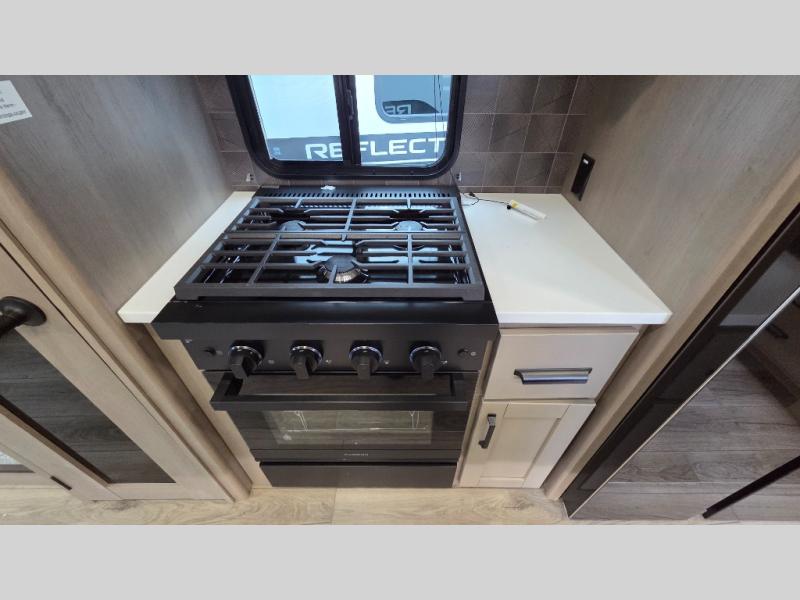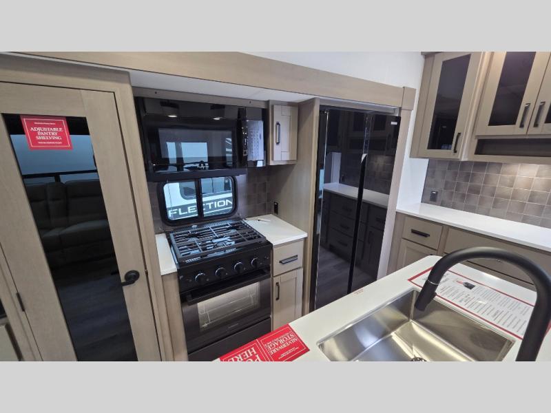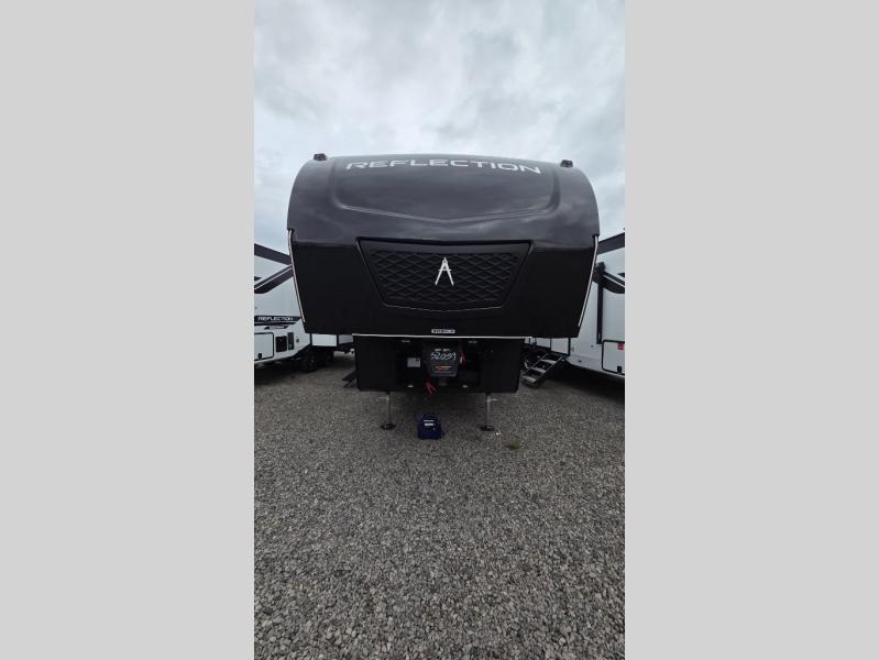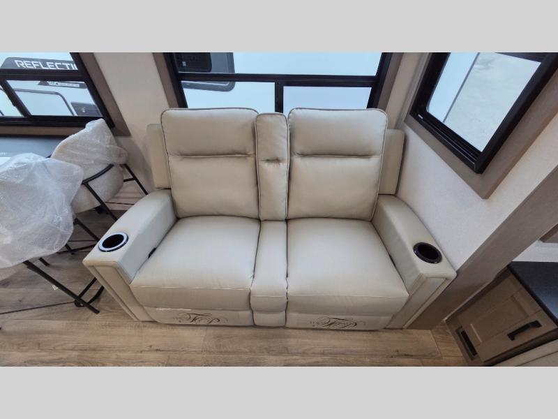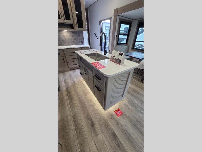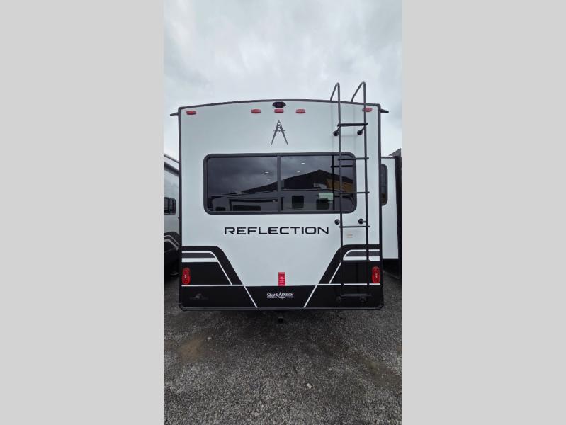 With any Reflection fifth wheel by Grand Design, you will have a solar panel for off-grid camping and a 60 amp charge controller and inverter prep, a Universal All-In-One docking station, unobstructed pass-through storage, and Goodyear Endurance tires. Each is constructed of gel coat exterior sidewalls, residential 5" truss rafters, walk-on roof decking, a fiberglass and radiant foil roof and front cap insulation plus laminated aluminum framed side walls, roof and end walls in slide rooms. Head inside to enjoy residential hardwood cabinet doors, premium Congoleum flooring, a spacious shower with a glass door, and many more comforts!