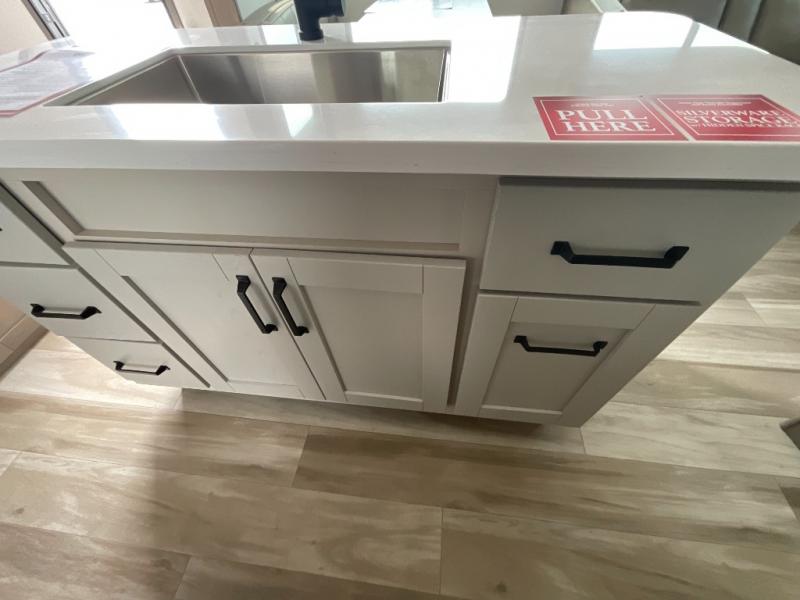 The chef-inspired kitchen is fully equipped with solid-surface countertops, a three-burner cooktop, microwave, residential refrigerator, and ample cabinetry, making meal preparation easy and enjoyable. The dinette provides a versatile area for dining, games, or remote work, ensuring the Reflection 311BHS adapts to your lifestyle.