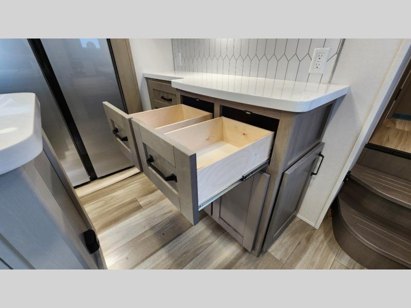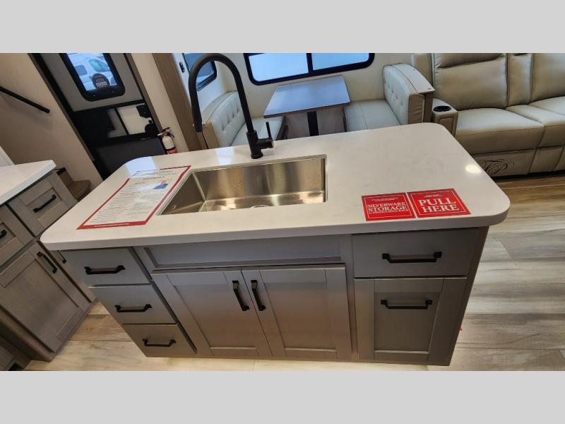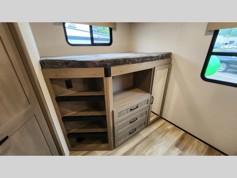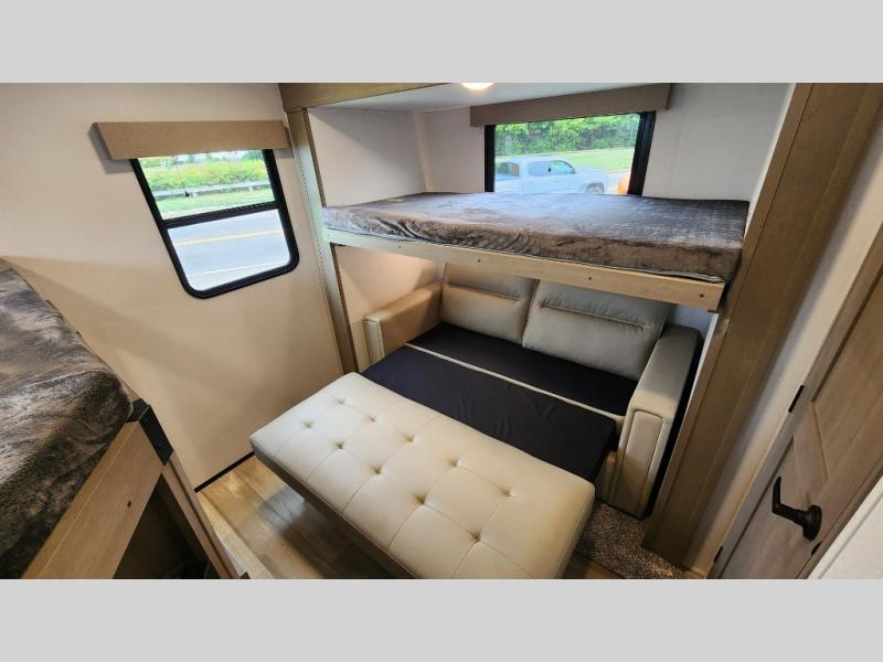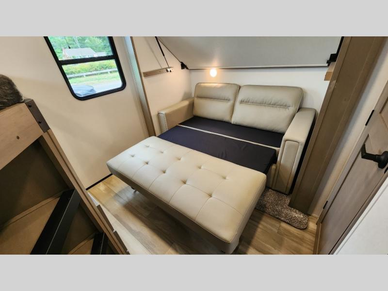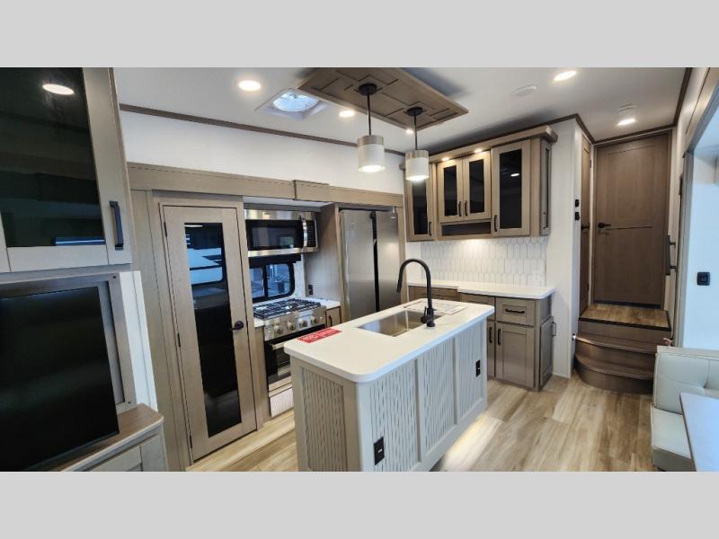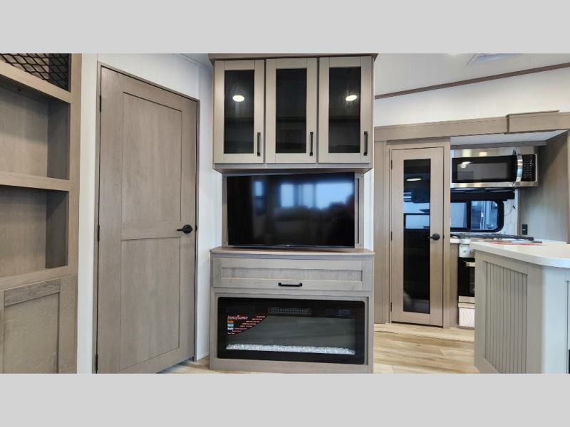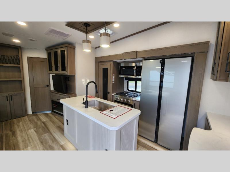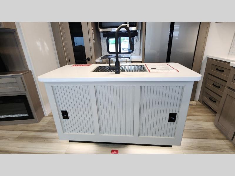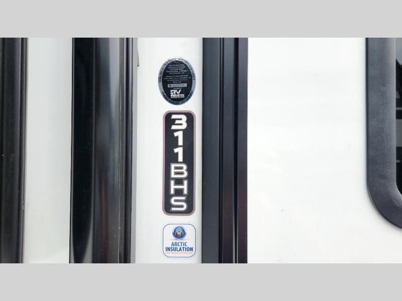 The 311BHS offers a private rear bunkhouse that keeps kids or guests comfortable and entertained, while the main living area invites you to relax with plush seating and an entertainment center. Its chef-inspired kitchen is ready for big meals or quick snacks, and the outdoor kitchen keeps you connected to the fun outside. Designed for families who want more space without sacrificing towability, this fifth wheel is loaded with high-end finishes and smart design.