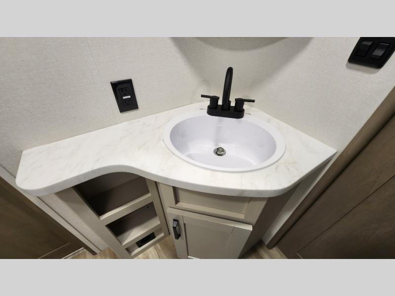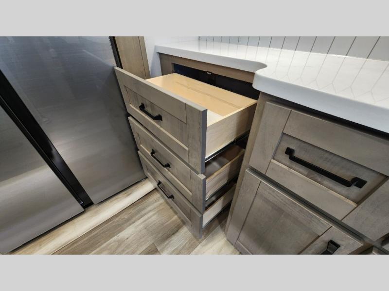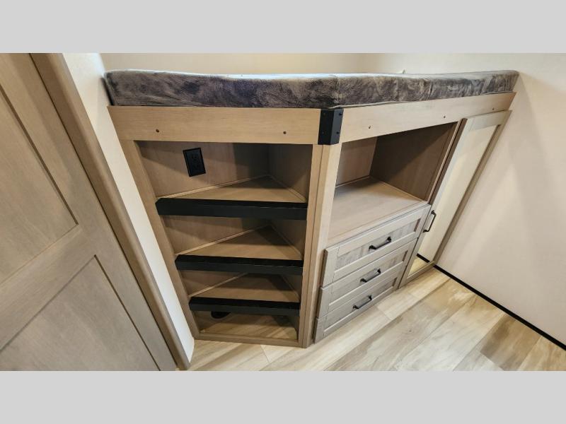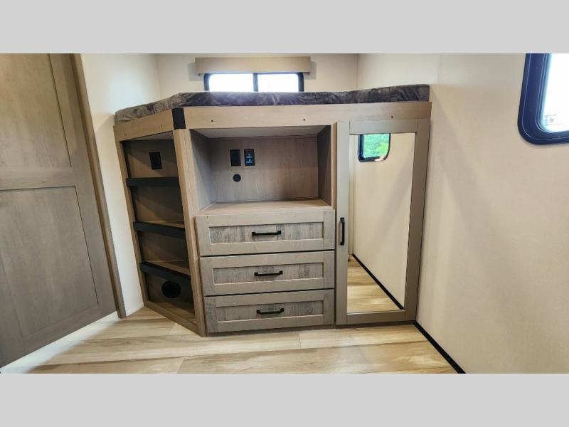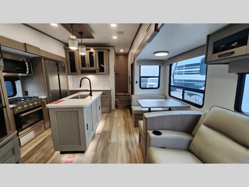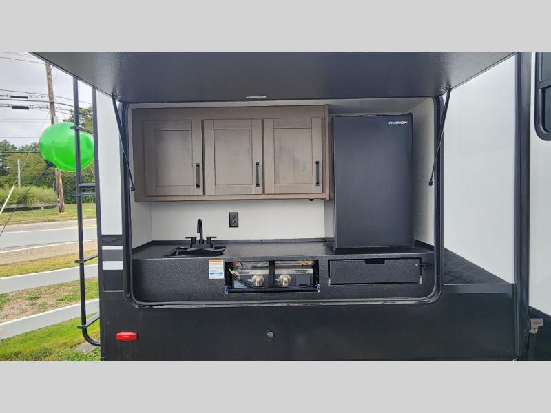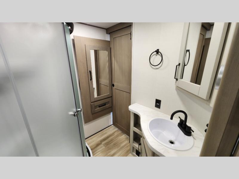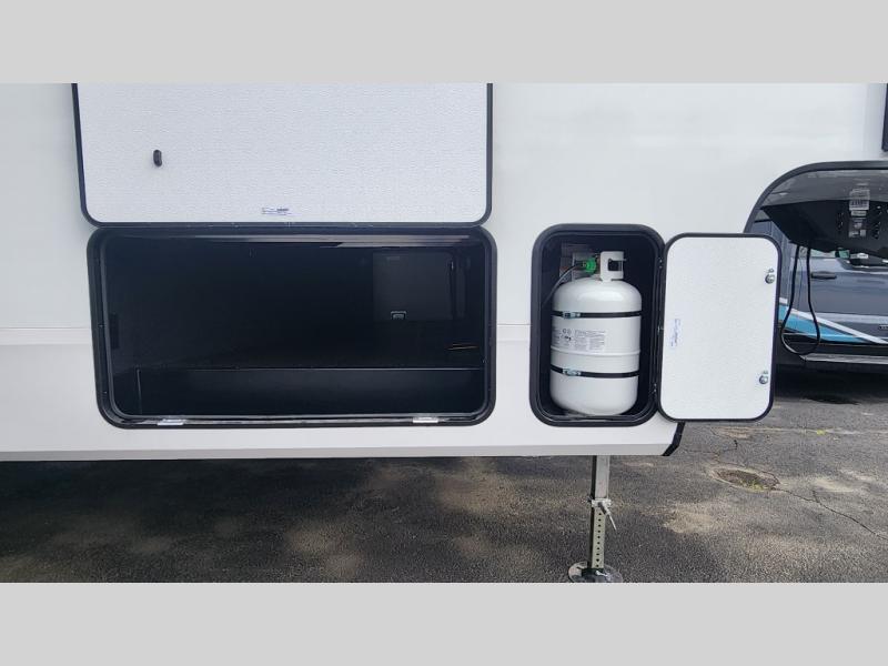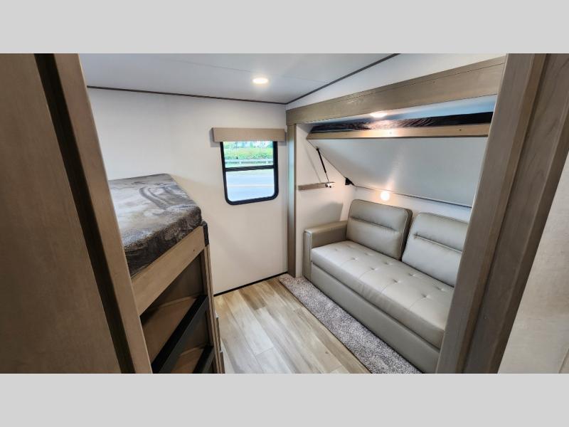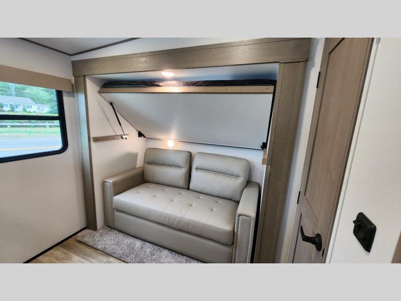The 311BHS offers a private rear bunkhouse that keeps kids or guests comfortable and entertained, while the main living area invites you to relax with plush seating and an entertainment center. Its chef-inspired kitchen is ready for big meals or quick snacks, and the outdoor kitchen keeps you connected to the fun outside. Designed for families who want more space without sacrificing towability, this fifth wheel is loaded with high-end finishes and smart design.