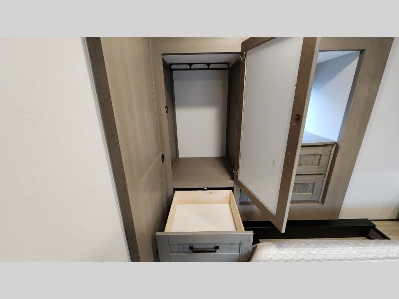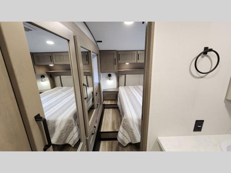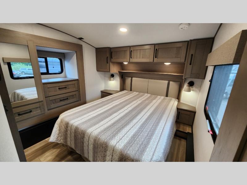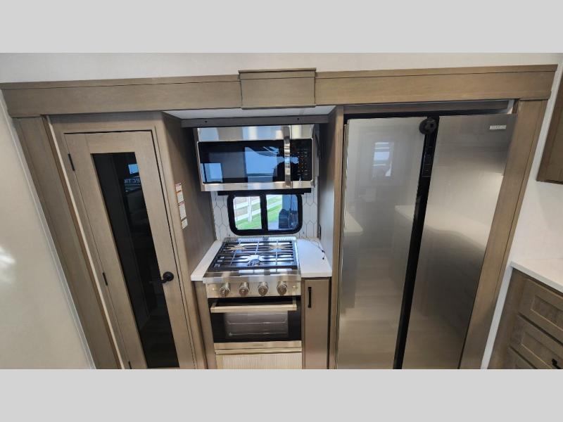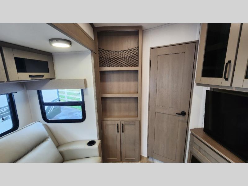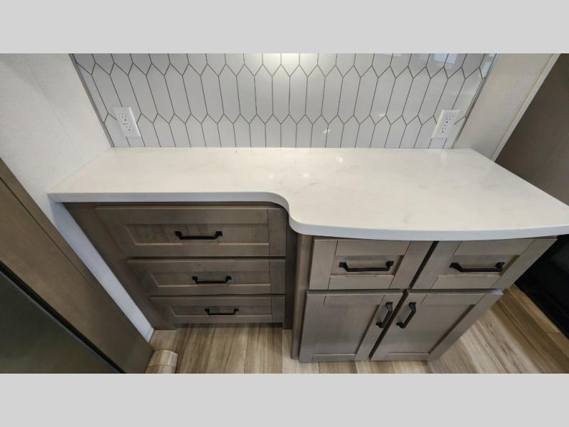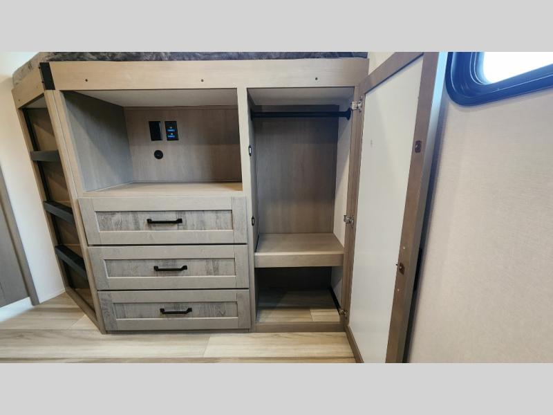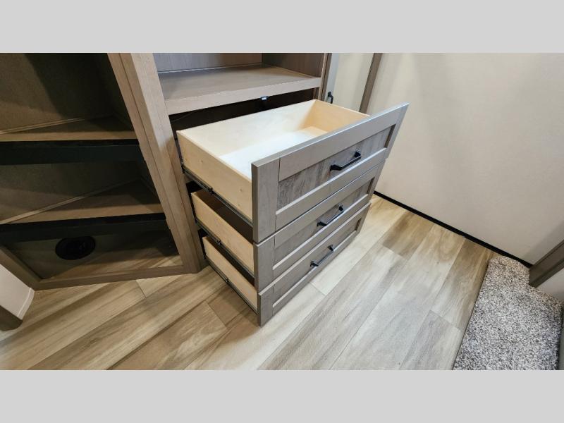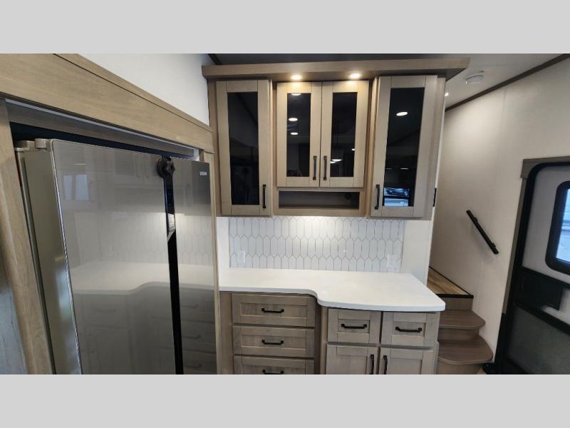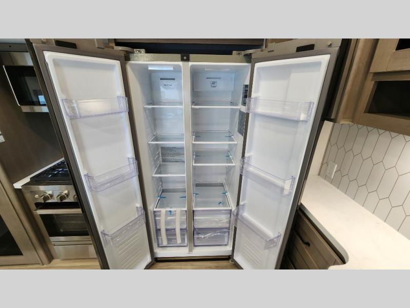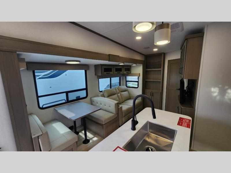 The 311BHS offers a private rear bunkhouse that keeps kids or guests comfortable and entertained, while the main living area invites you to relax with plush seating and an entertainment center. Its chef-inspired kitchen is ready for big meals or quick snacks, and the outdoor kitchen keeps you connected to the fun outside. Designed for families who want more space without sacrificing towability, this fifth wheel is loaded with high-end finishes and smart design.