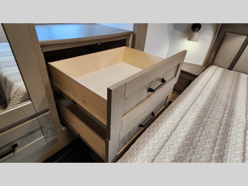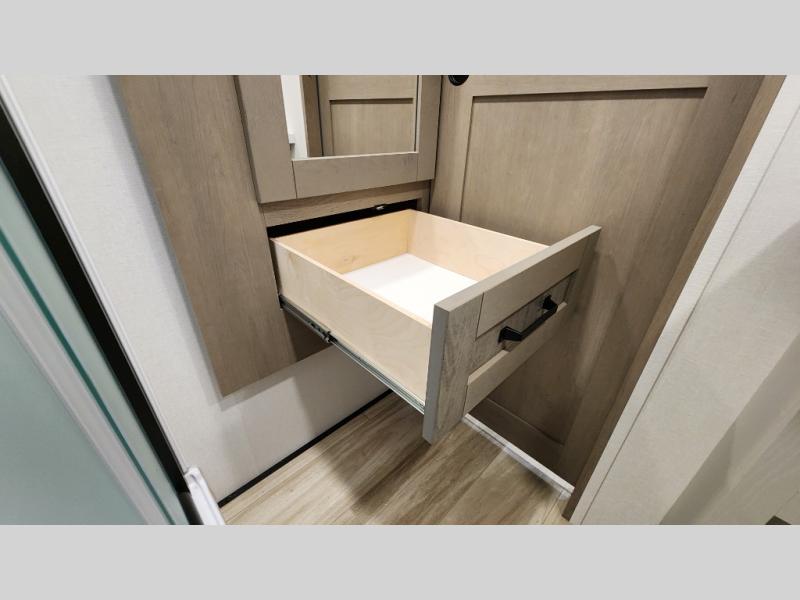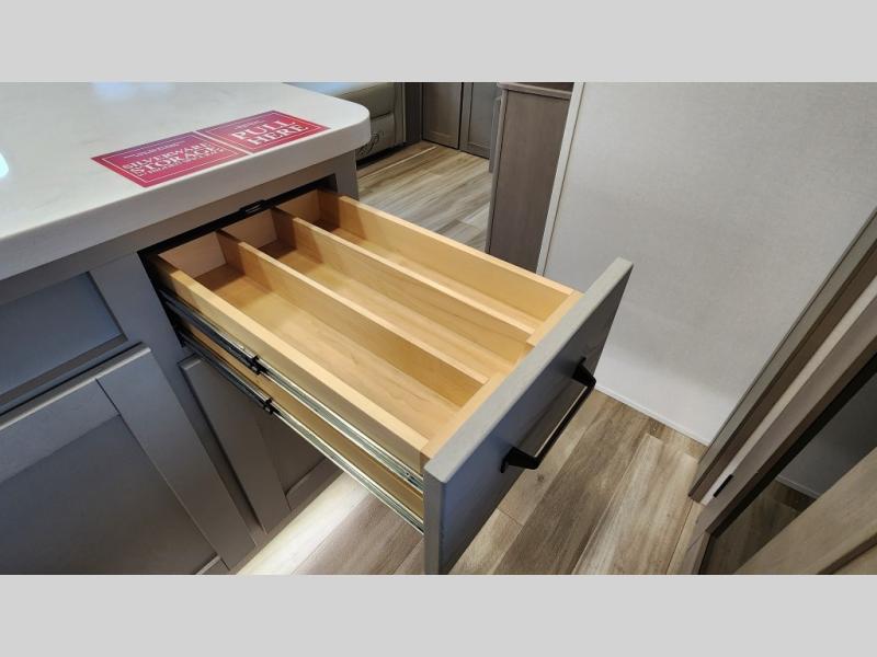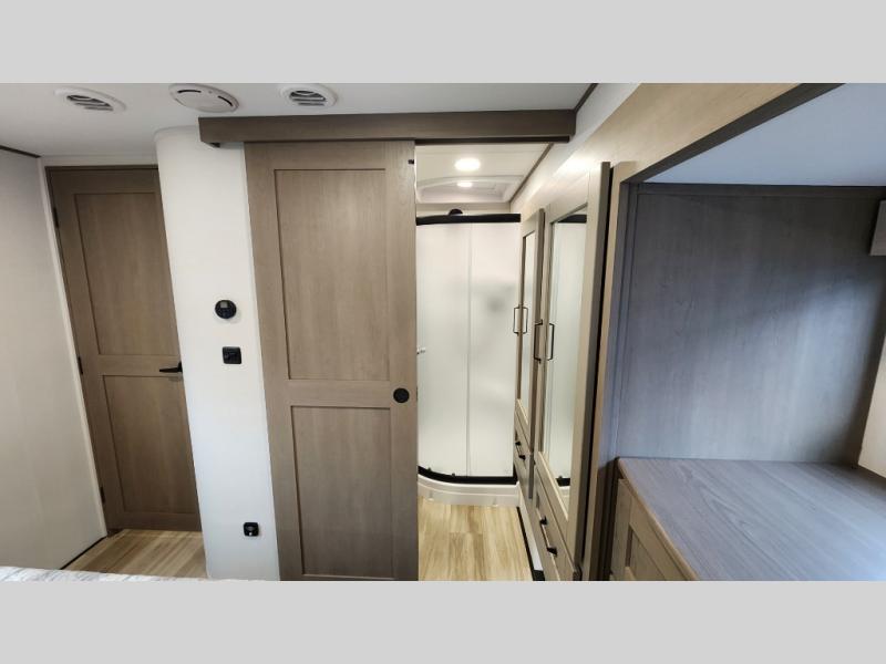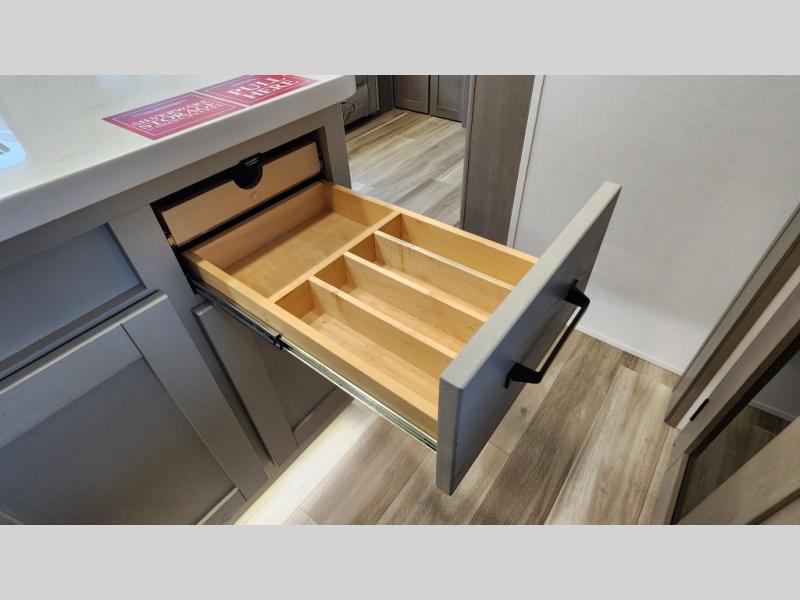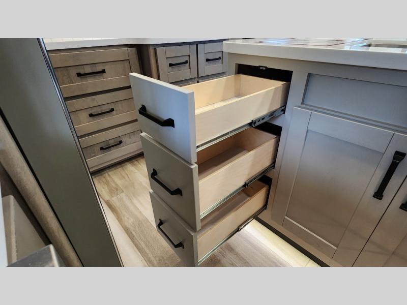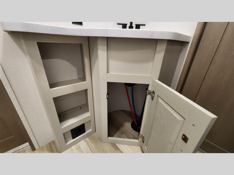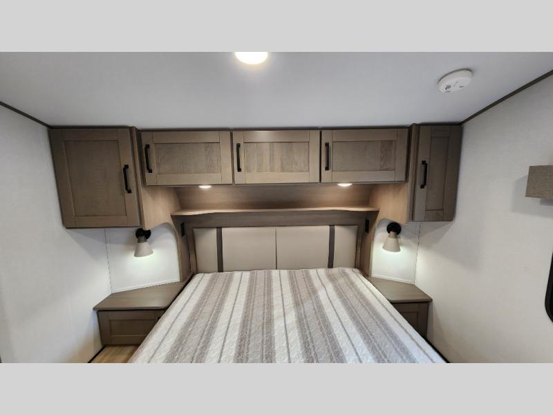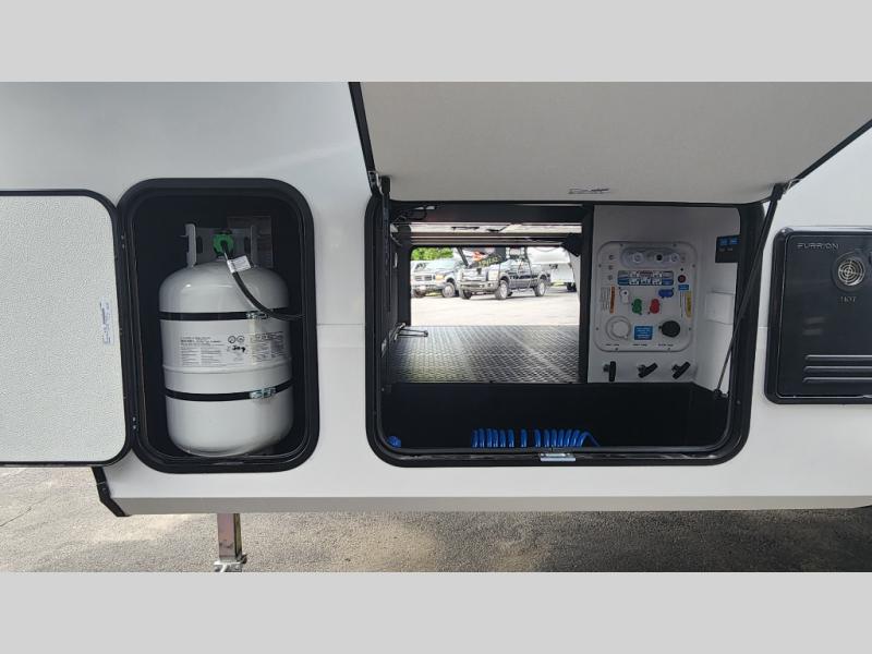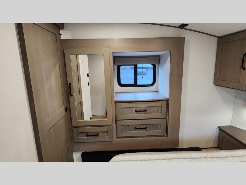 The 311BHS offers a private rear bunkhouse that keeps kids or guests comfortable and entertained, while the main living area invites you to relax with plush seating and an entertainment center. Its chef-inspired kitchen is ready for big meals or quick snacks, and the outdoor kitchen keeps you connected to the fun outside. Designed for families who want more space without sacrificing towability, this fifth wheel is loaded with high-end finishes and smart design.