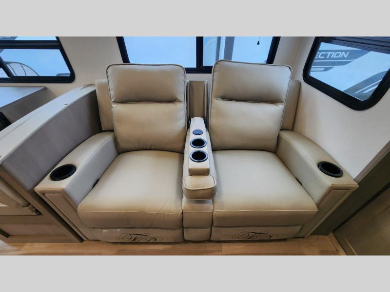 This Unit Includes $19,649 in Options Featuring a Fireplace; Theater Seating; Dual Entry Bathroom; Booth Dinette; Pantry; Hutch; Outdoor Kitchen!
