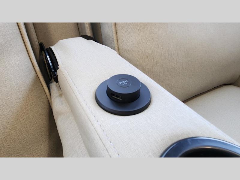 Spacious Living Area with theater seating, tri-fold sofa & freestanding dinette