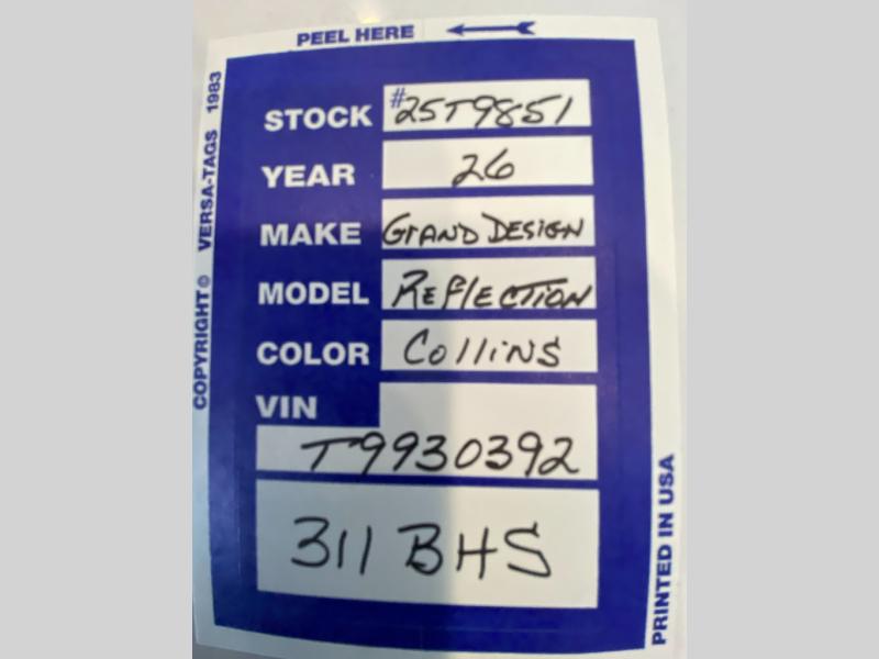 New 2026 Grand Design Reflection 311BHS Fifth Wheel