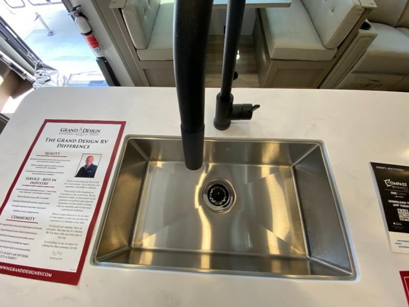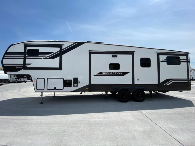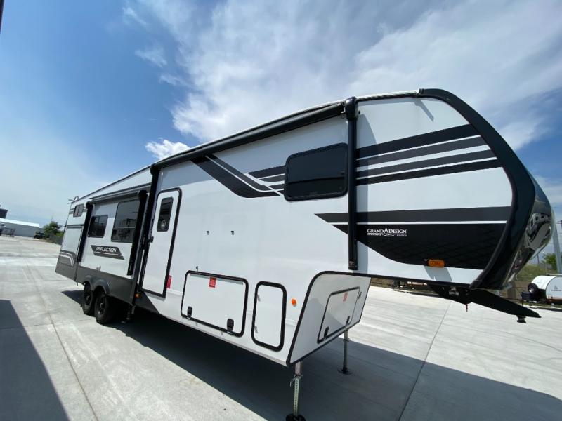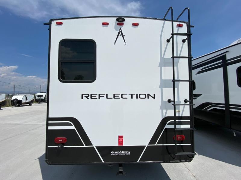 With any Reflection fifth wheel by Grand Design, you will have a solar panel for off-grid camping and a 60 amp charge controller and inverter prep, a Universal All-In-One docking station, unobstructed pass-through storage, and Goodyear Endurance tires. Each is constructed of gel coat exterior sidewalls, residential 5" truss rafters, walk-on roof decking, a fiberglass and radiant foil roof and front cap insulation plus laminated aluminum framed side walls, roof and end walls in slide rooms. Head inside to enjoy residential hardwood cabinet doors, premium Congoleum flooring, a spacious shower with a glass door, and many more comforts!