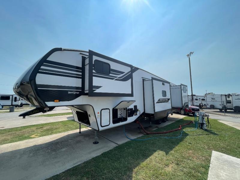 With any Reflection fifth wheel by Grand Design, you will have a solar panel for off-grid camping and a 60 amp charge controller and inverter prep, a Universal All-In-One docking station, unobstructed pass-through storage, and Goodyear Endurance tires. Each is constructed of gel coat exterior sidewalls, residential 5" truss rafters, walk-on roof decking, a fiberglass and radiant foil roof and front cap insulation plus laminated aluminum framed side walls, roof and end walls in slide rooms. Head inside to enjoy residential hardwood cabinet doors, premium Congoleum flooring, a spacious shower with a glass door, and many more comforts!