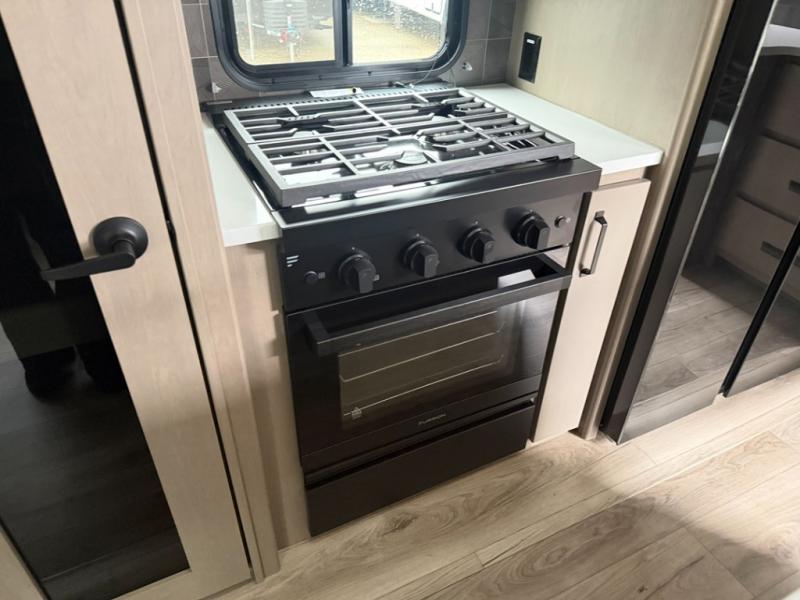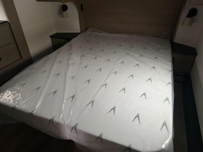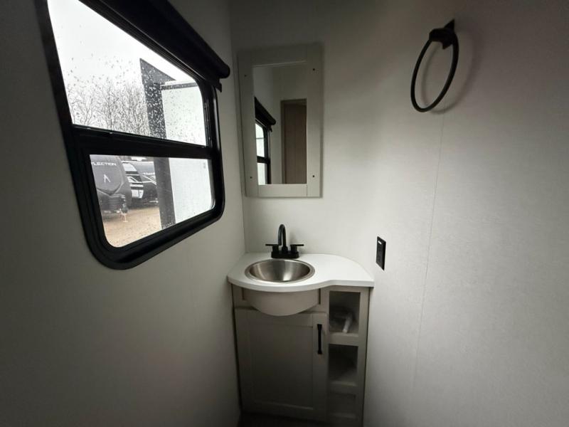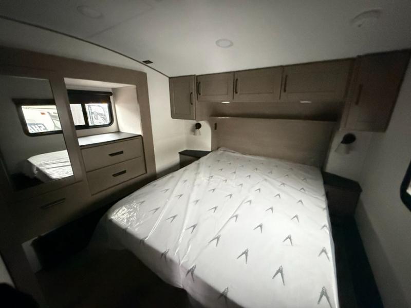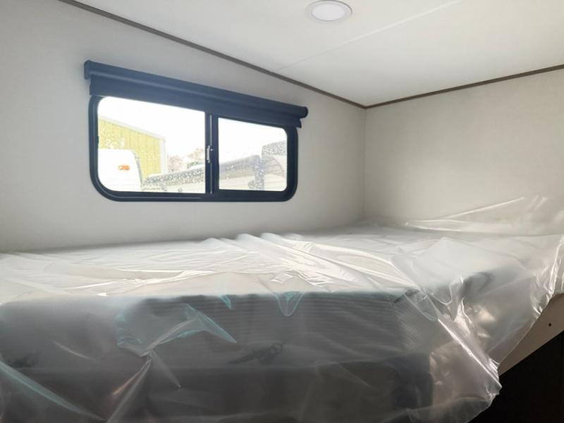 Are you looking to travel with your family and friends and want enough space for everyone to be comfortable? Step inside using the Step Above wit lift assist entry steps, to find a private bunkhouse in the rear of this fifth wheel which offers a slide out flip bunk above a tri-fold sofa, a 44" bunk bed with window and storage below, plus its very own private half bathroom. The theater seating or tri-fold sofa option is a great place to unwind at night in front of the entertainment center with a 40" LED HDTV and fireplace below it. There is a booth dinette or you can a swivel dinette option to dine at, and the kitchen island will provide more counter space to prep meals. You will find full amenities including a 16 cu. ft. 12V refrigerator and a hutch. This fifth wheel also includes a double entry bathroom with a radius shower, and you can wake up refreshed each morning after sleeping on your own queen bed.