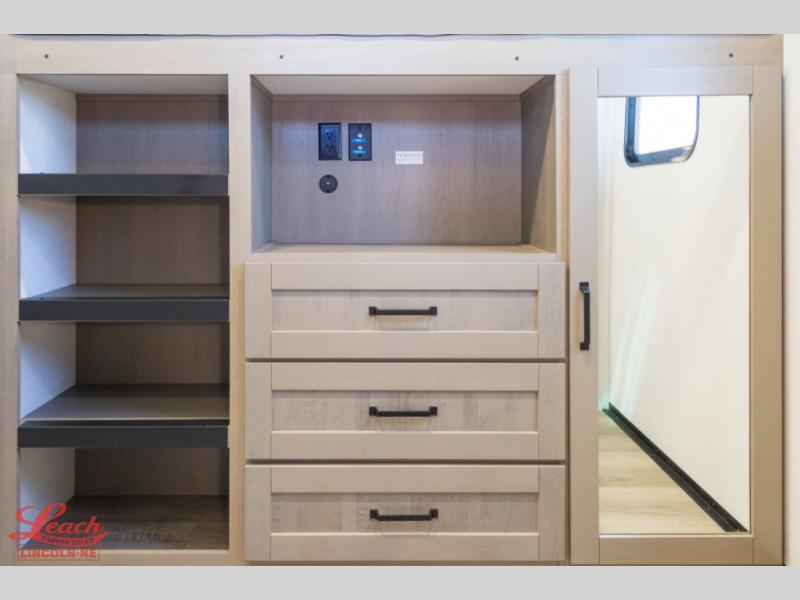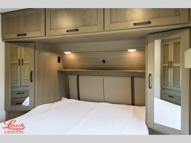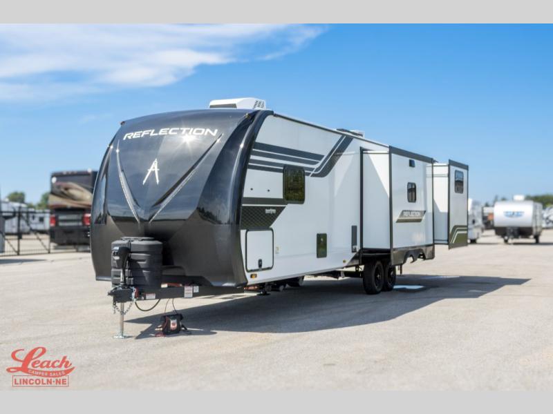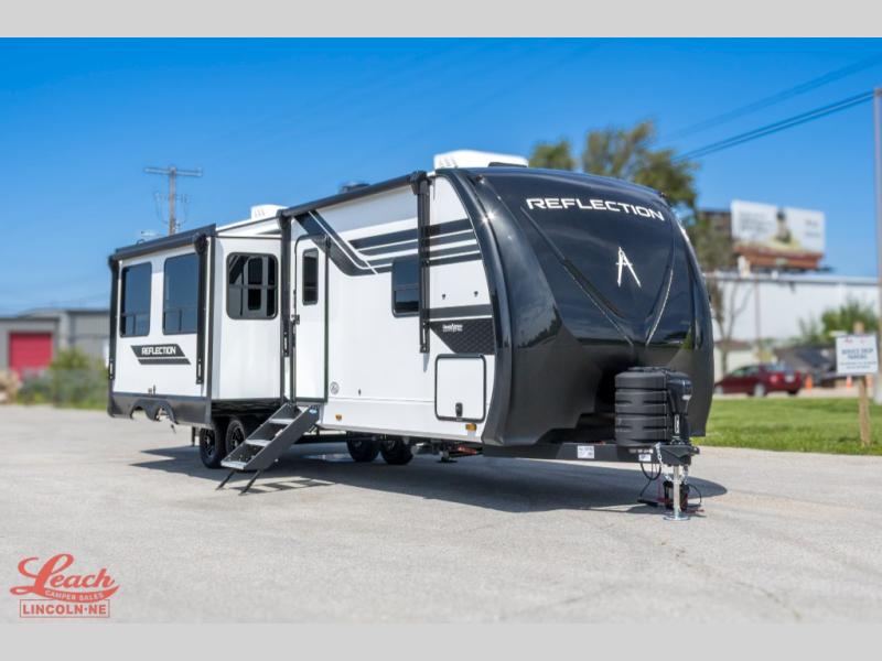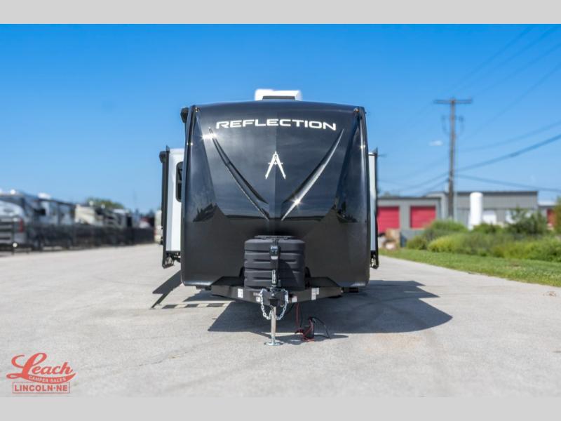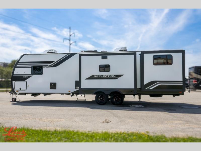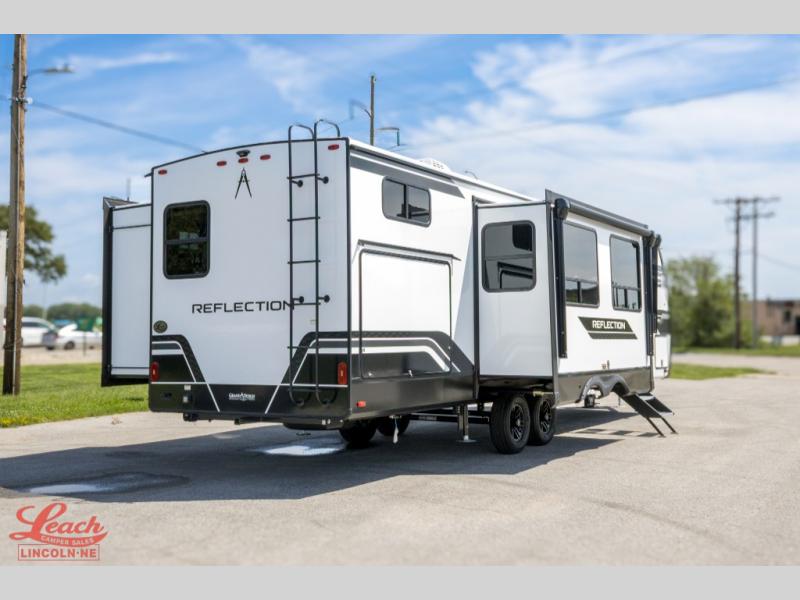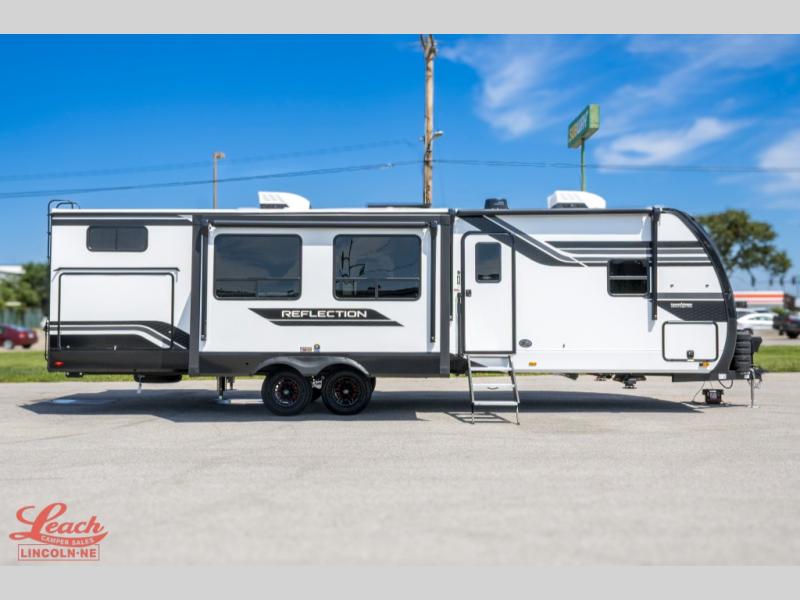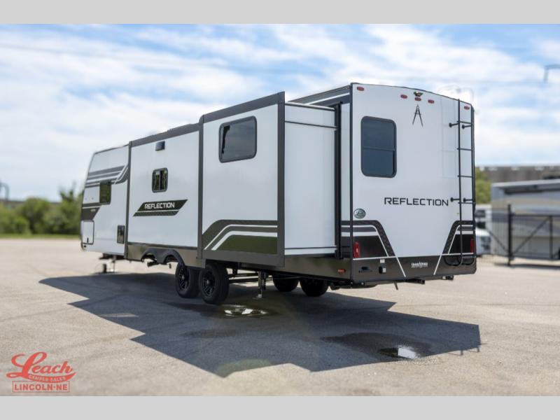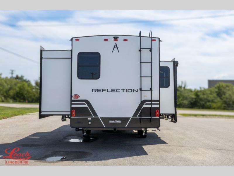 With any Reflection travel trailer by Grand Design, you will have a solar panel for off-grid camping and a 60 amp charge controller and inverter prep, a Universal All-In-One docking station, unobstructed pass-through storage, and Goodyear Endurance tires. Each is constructed of gel coat exterior sidewalls, residential 5" truss rafters, walk-on roof decking, a fiberglass and radiant foil roof and front cap insulation plus laminated aluminum framed side walls, roof and end walls in slide rooms. Head inside to enjoy residential hardwood cabinet doors, premium Congoleum flooring, a spacious shower with a glass door, and many more comforts!