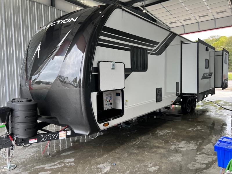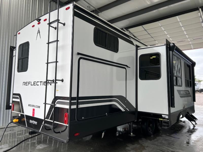 With any Reflection travel trailer by Grand Design, you will have a solar panel for off-grid camping and a 60 amp charge controller and inverter prep, a Universal All-In-One docking station, unobstructed pass-through storage, and Goodyear Endurance tires. Each is constructed of gel coat exterior sidewalls, residential 5" truss rafters, walk-on roof decking, a fiberglass and radiant foil roof and front cap insulation plus laminated aluminum framed side walls, roof and end walls in slide rooms. Head inside to enjoy residential hardwood cabinet doors, premium Congoleum flooring, a spacious shower with a glass door, and many more comforts!