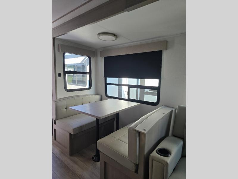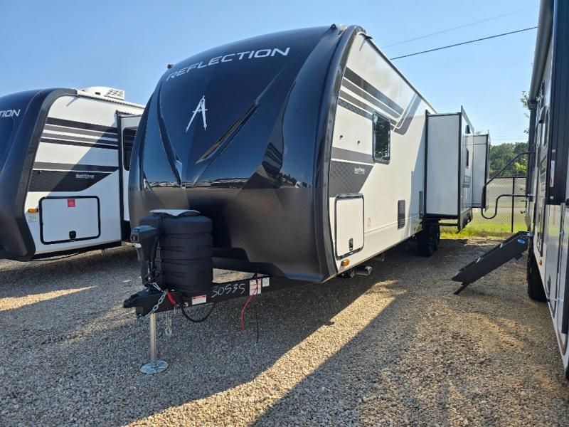 With any Reflection travel trailer by Grand Design, you will have a solar panel for off-grid camping and a 60 amp charge controller and inverter prep, a Universal All-In-One docking station, unobstructed pass-through storage, and Goodyear Endurance tires. Each is constructed of gel coat exterior sidewalls, residential 5" truss rafters, walk-on roof decking, a fiberglass and radiant foil roof and front cap insulation plus laminated aluminum framed side walls, roof and end walls in slide rooms. Head inside to enjoy residential hardwood cabinet doors, premium Congoleum flooring, a spacious shower with a glass door, and many more comforts!