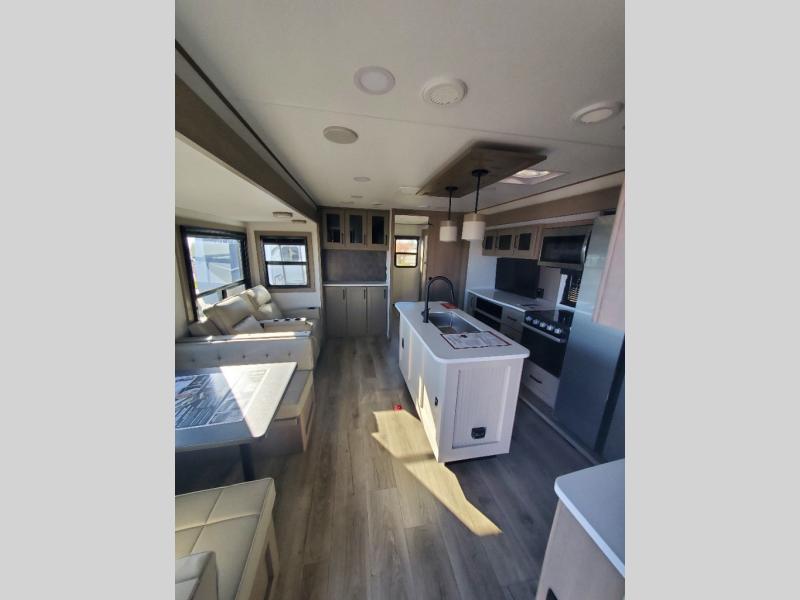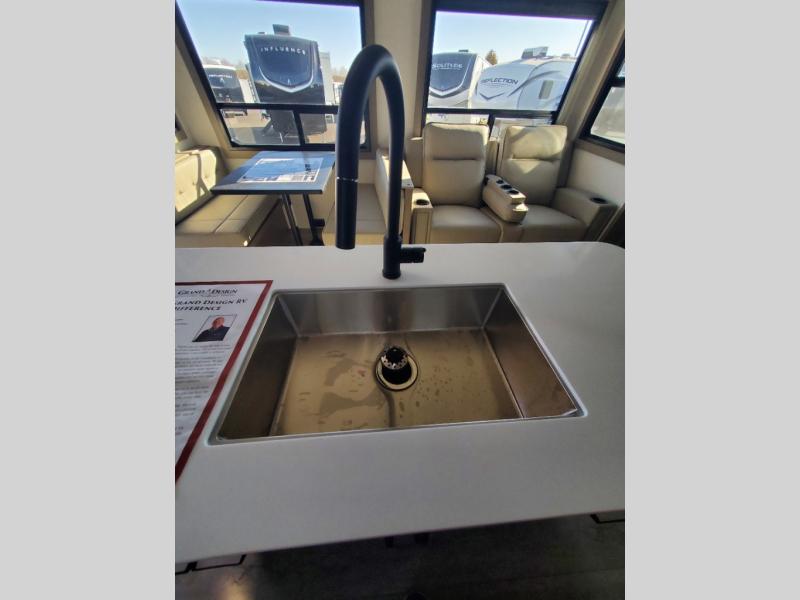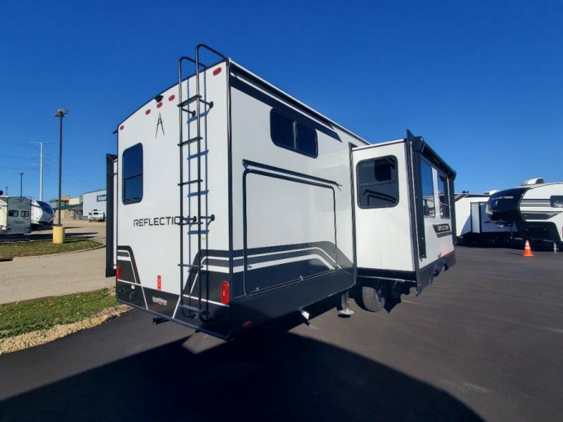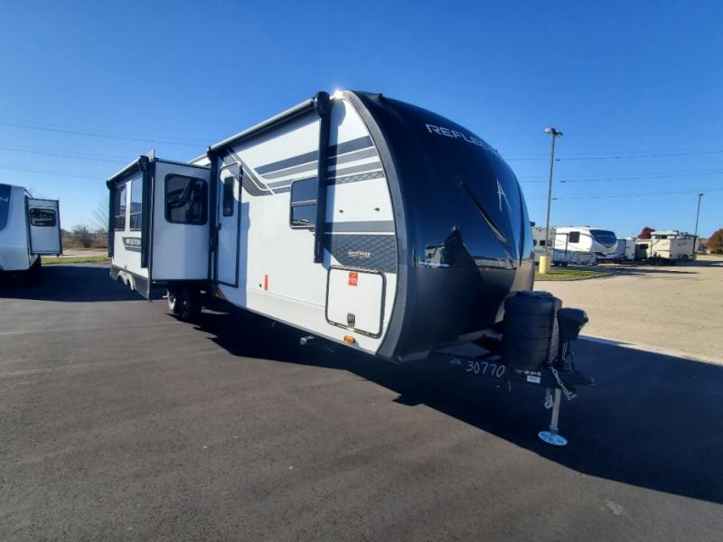 With any Reflection travel trailer by Grand Design, you will have a solar panel for off-grid camping and a 60 amp charge controller and inverter prep, a Universal All-In-One docking station, unobstructed pass-through storage, and Goodyear Endurance tires. Each is constructed of gel coat exterior sidewalls, residential 5" truss rafters, walk-on roof decking, a fiberglass and radiant foil roof and front cap insulation plus laminated aluminum framed side walls, roof and end walls in slide rooms. Head inside to enjoy residential hardwood cabinet doors, premium Congoleum flooring, a spacious shower with a glass door, and many more comforts!