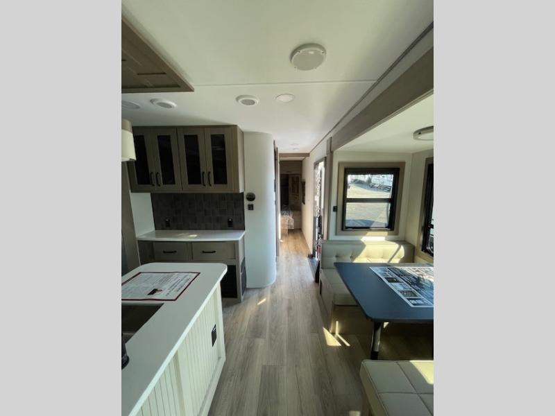 With any Reflection travel trailer by Grand Design, you will have a solar panel for off-grid camping and a 60 amp charge controller and inverter prep, a Universal All-In-One docking station, unobstructed pass-through storage, and Goodyear Endurance tires. Each is constructed of gel coat exterior sidewalls, residential 5" truss rafters, walk-on roof decking, a fiberglass and radiant foil roof and front cap insulation plus laminated aluminum framed side walls, roof and end walls in slide rooms. Head inside to enjoy residential hardwood cabinet doors, premium Congoleum flooring, a spacious shower with a glass door, and many more comforts!