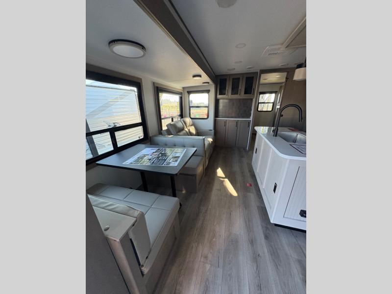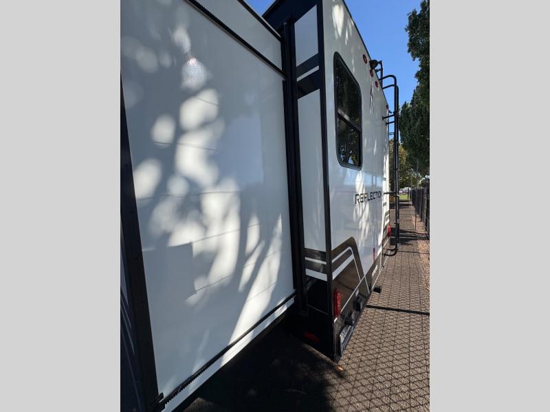 With any Reflection travel trailer by Grand Design, you will have a solar panel for off-grid camping and a 60 amp charge controller and inverter prep, a Universal All-In-One docking station, unobstructed pass-through storage, and Goodyear Endurance tires. Each is constructed of gel coat exterior sidewalls, residential 5" truss rafters, walk-on roof decking, a fiberglass and radiant foil roof and front cap insulation plus laminated aluminum framed side walls, roof and end walls in slide rooms. Head inside to enjoy residential hardwood cabinet doors, premium Congoleum flooring, a spacious shower with a glass door, and many more comforts!