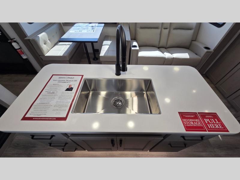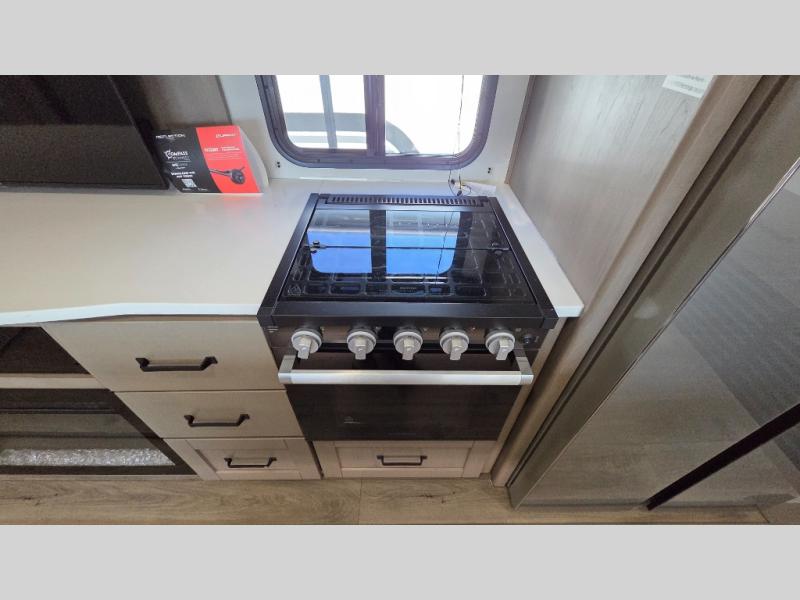 With any Reflection travel trailer by Grand Design, you will have a solar panel for off-grid camping and a 60 amp charge controller and inverter prep, a Universal All-In-One docking station, unobstructed pass-through storage, and Goodyear Endurance tires. Each is constructed of gel coat exterior sidewalls, residential 5" truss rafters, walk-on roof decking, a fiberglass and radiant foil roof and front cap insulation plus laminated aluminum framed side walls, roof and end walls in slide rooms. Head inside to enjoy residential hardwood cabinet doors, premium Congoleum flooring, a spacious shower with a glass door, and many more comforts!