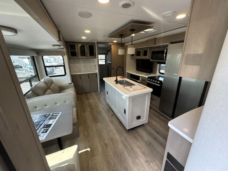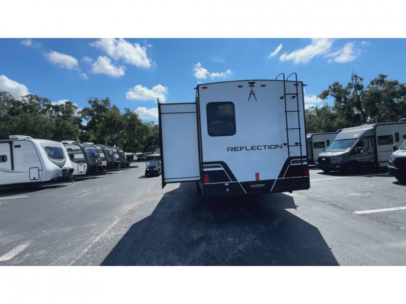 With any Reflection travel trailer by Grand Design, you will have a solar panel for off-grid camping and a 60 amp charge controller and inverter prep, a Universal All-In-One docking station, unobstructed pass-through storage, and Goodyear Endurance tires. Each is constructed of gel coat exterior sidewalls, residential 5" truss rafters, walk-on roof decking, a fiberglass and radiant foil roof and front cap insulation plus laminated aluminum framed side walls, roof and end walls in slide rooms. Head inside to enjoy residential hardwood cabinet doors, premium Congoleum flooring, a spacious shower with a glass door, and many more comforts!