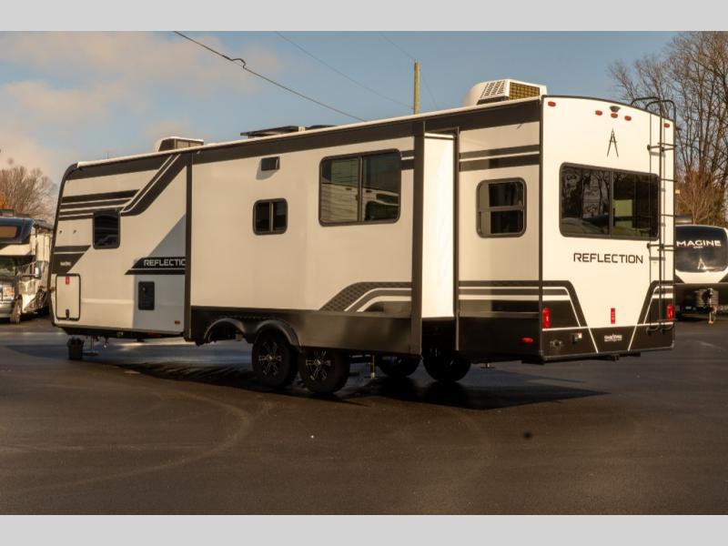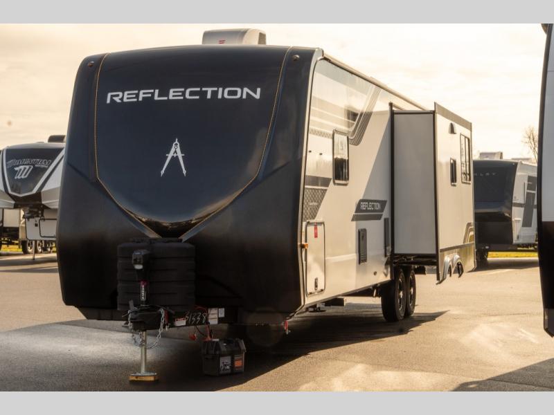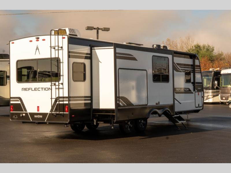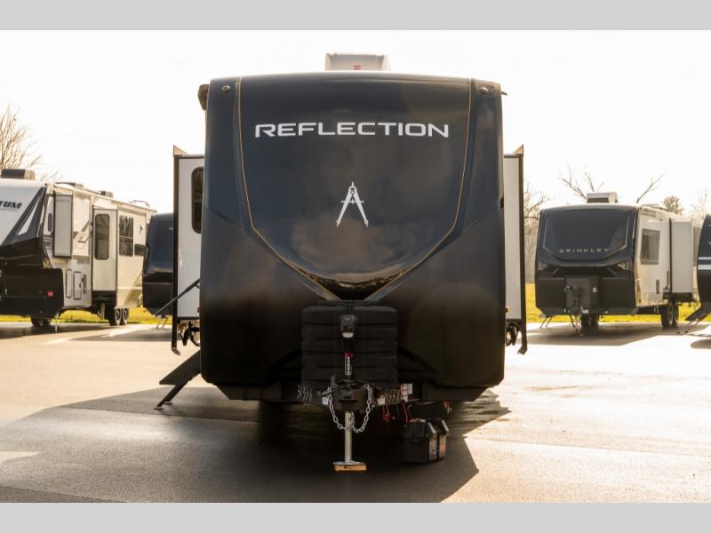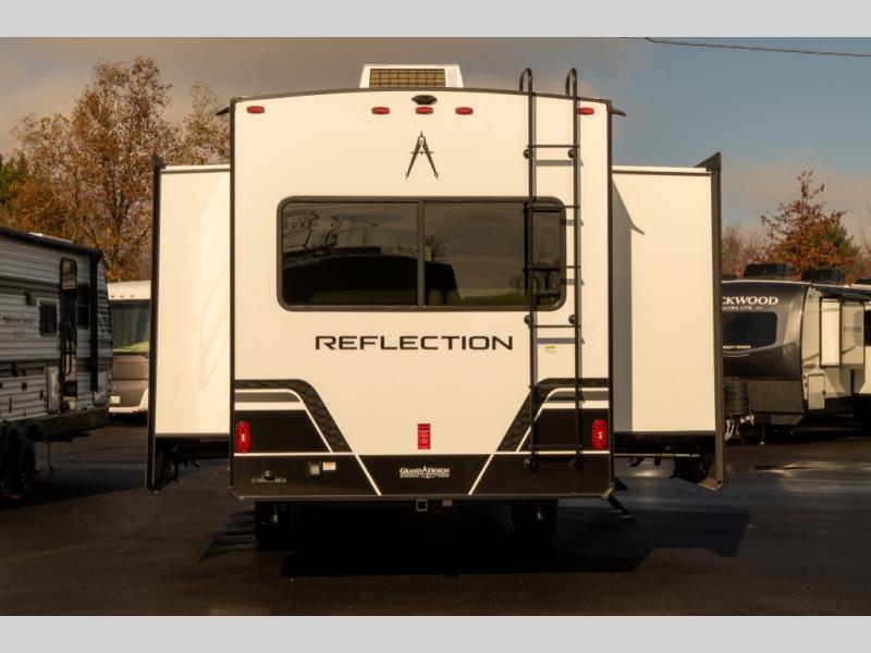 With any Reflection travel trailer by Grand Design, you will have a solar panel for off-grid camping and a 60 amp charge controller and inverter prep, a Universal All-In-One docking station, unobstructed pass-through storage, and Goodyear Endurance tires. Each is constructed of gel coat exterior sidewalls, residential 5" truss rafters, walk-on roof decking, a fiberglass and radiant foil roof and front cap insulation plus laminated aluminum framed side walls, roof and end walls in slide rooms. Head inside to enjoy residential hardwood cabinet doors, premium Congoleum flooring, a spacious shower with a glass door, and many more comforts!