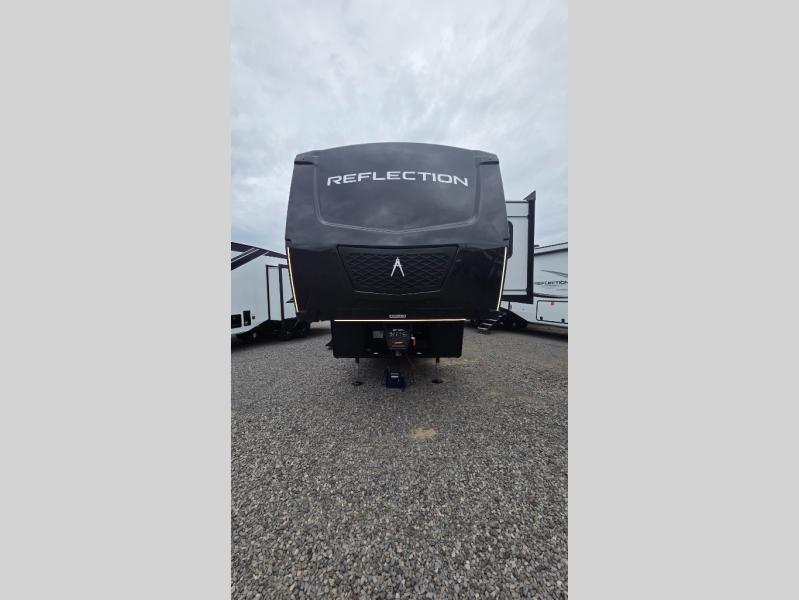With any Reflection fifth wheel by Grand Design, you will have a solar panel for off-grid camping and a 60 amp charge controller and inverter prep, a Universal All-In-One docking station, unobstructed pass-through storage, and Goodyear Endurance tires. Each is constructed of gel coat exterior sidewalls, residential 5" truss rafters, walk-on roof decking, a fiberglass and radiant foil roof and front cap insulation plus laminated aluminum framed side walls, roof and end walls in slide rooms. Head inside to enjoy residential hardwood cabinet doors, premium Congoleum flooring, a spacious shower with a glass door, and many more comforts!