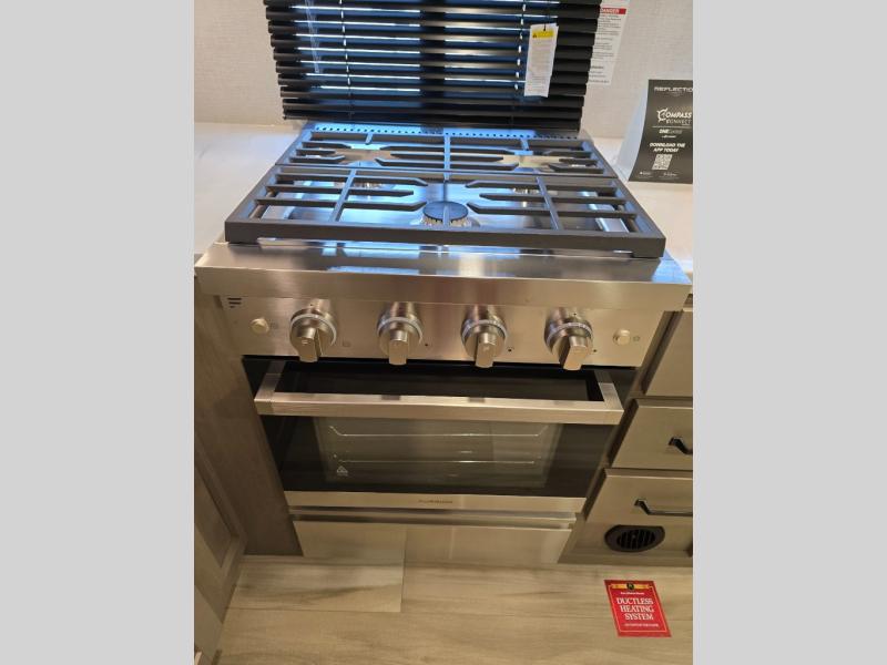 With any Reflection travel trailer by Grand Design, you will have a solar panel for off-grid camping and a 60 amp charge controller and inverter prep, a Universal All-In-One docking station, unobstructed pass-through storage, and Goodyear Endurance tires. Each is constructed of gel coat exterior sidewalls, residential 5" truss rafters, walk-on roof decking, a fiberglass and radiant foil roof and front cap insulation plus laminated aluminum framed side walls, roof and end walls in slide rooms. Head inside to enjoy residential hardwood cabinet doors, premium Congoleum flooring, a spacious shower with a glass door, and many more comforts!