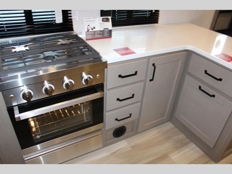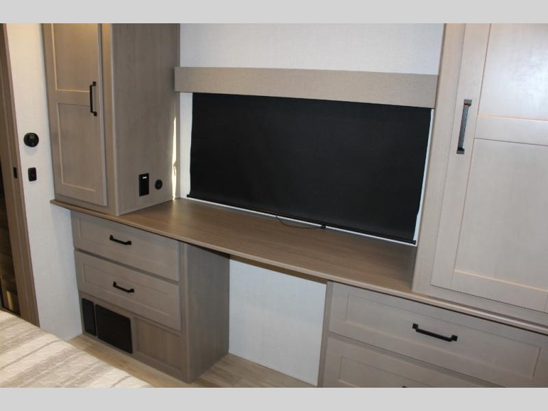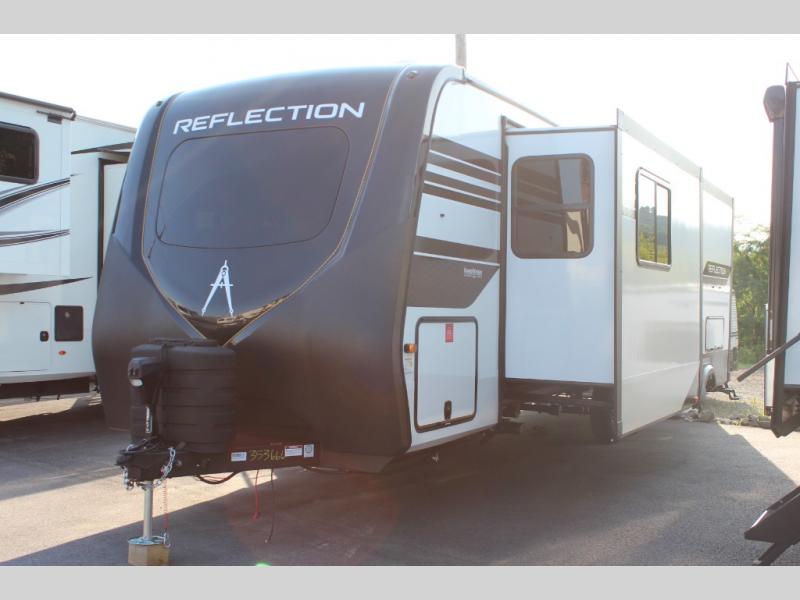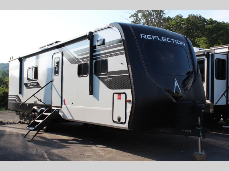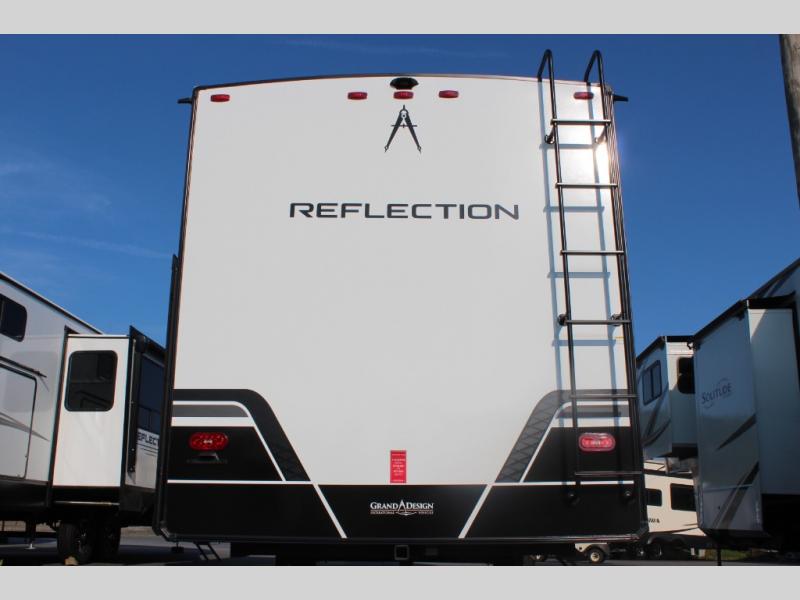With any Reflection travel trailer by Grand Design, you will have a solar panel for off-grid camping and a 60 amp charge controller and inverter prep, a Universal All-In-One docking station, unobstructed pass-through storage, and Goodyear Endurance tires. Each is constructed of gel coat exterior sidewalls, residential 5" truss rafters, walk-on roof decking, a fiberglass and radiant foil roof and front cap insulation plus laminated aluminum framed side walls, roof and end walls in slide rooms. Head inside to enjoy residential hardwood cabinet doors, premium Congoleum flooring, a spacious shower with a glass door, and many more comforts!