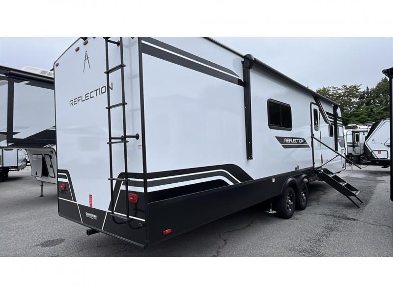 With any Reflection travel trailer by Grand Design, you will have a solar panel for off-grid camping and a 60 amp charge controller and inverter prep, a Universal All-In-One docking station, unobstructed pass-through storage, and Goodyear Endurance tires. Each is constructed of gel coat exterior sidewalls, residential 5" truss rafters, walk-on roof decking, a fiberglass and radiant foil roof and front cap insulation plus laminated aluminum framed side walls, roof and end walls in slide rooms. Head inside to enjoy residential hardwood cabinet doors, premium Congoleum flooring, a spacious shower with a glass door, and many more comforts!