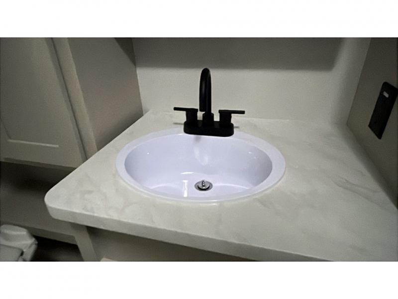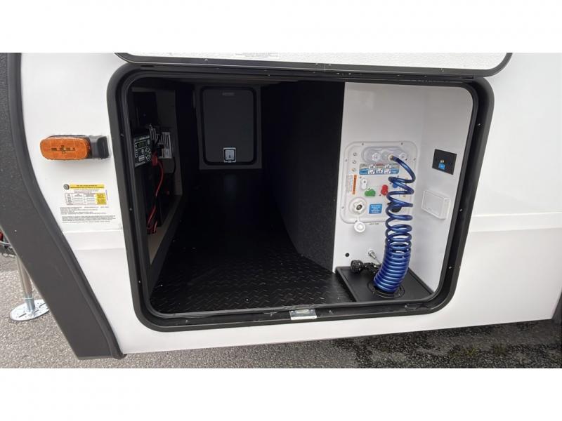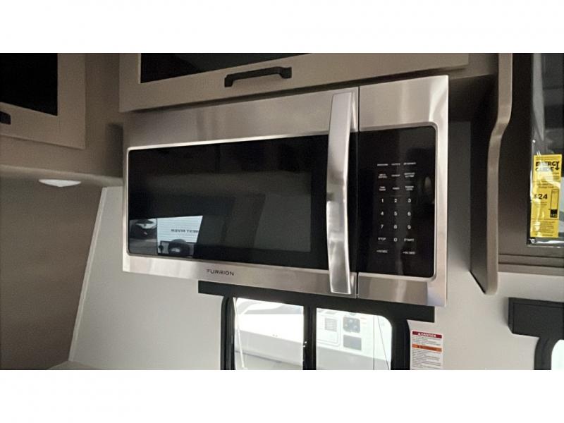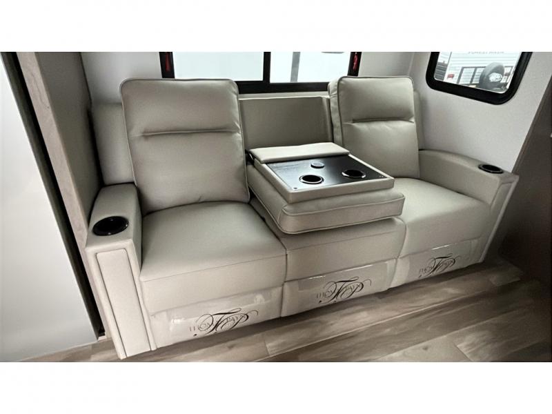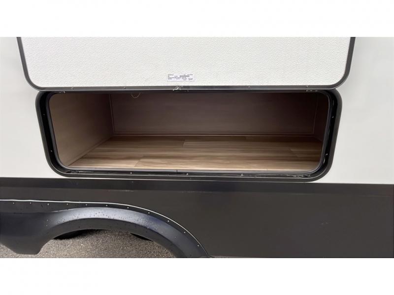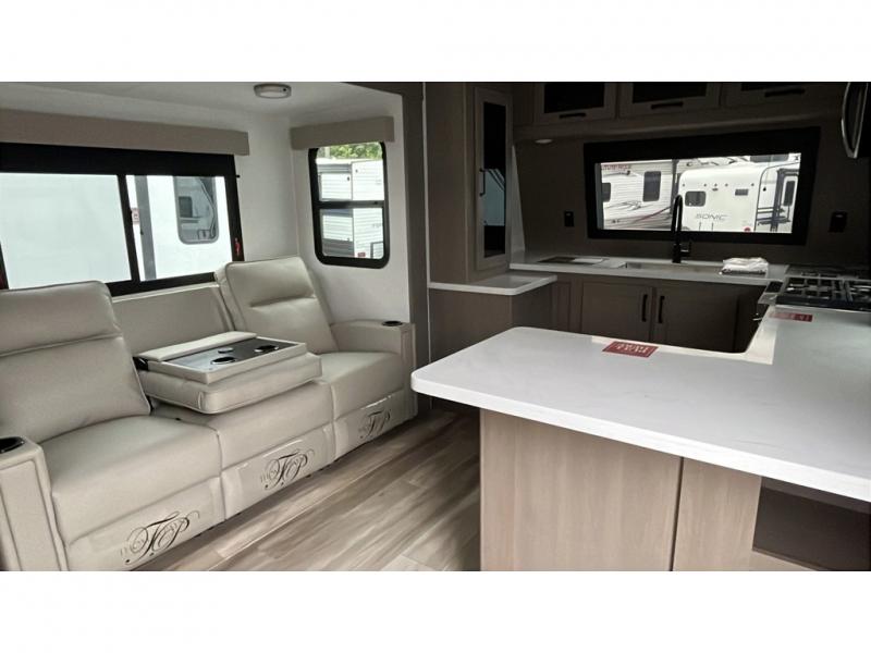 This front kitchen travel trailer will be perfect for camping trips to the lake or woods! There is ample counter space to prep your best meals, including an L-shaped kitchen counter with a bar stool to enjoy your coffee at. The theater seating is inviting, and you can choose the optional tri-fold sofa and end table or optional U-shaped dinette if you need more sleeping space for guests. This unit features a massive master bedroom with a queen bed slide and optional king bed, two closets, and a spacious rear bath. There are two bath sinks here, a 30" x 48" shower, plus washer and dryer prep if you choose to add these appliances!