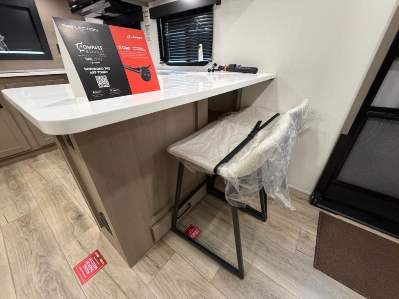 With any Reflection travel trailer by Grand Design, you will have a solar panel for off-grid camping and a 60-amp charge controller and inverter prep, a Universal All-In-One docking station, unobstructed pass-through storage, and Goodyear Endurance tires. Each is constructed of gel coat exterior sidewalls, residential 5" truss rafters, walk-on roof decking, a fiberglass and radiant foil roof and front cap insulation plus laminated aluminum framed side walls, roof and end walls in slide rooms. Head inside to enjoy residential hardwood cabinet doors, premium Congoleum flooring, a spacious shower with a glass door, and many more comforts!