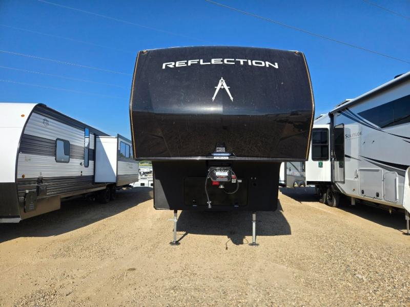 With any Reflection fifth wheel by Grand Design, you will have a solar panel for off-grid camping and a 60 amp charge controller and inverter prep, a Universal All-In-One docking station, unobstructed pass-through storage, and Goodyear Endurance tires. Each is constructed of gel coat exterior sidewalls, residential 5" truss rafters, walk-on roof decking, a fiberglass and radiant foil roof and front cap insulation plus laminated aluminum framed side walls, roof and end walls in slide rooms. Head inside to enjoy residential hardwood cabinet doors, premium Congoleum flooring, a spacious shower with a glass door, and many more comforts!