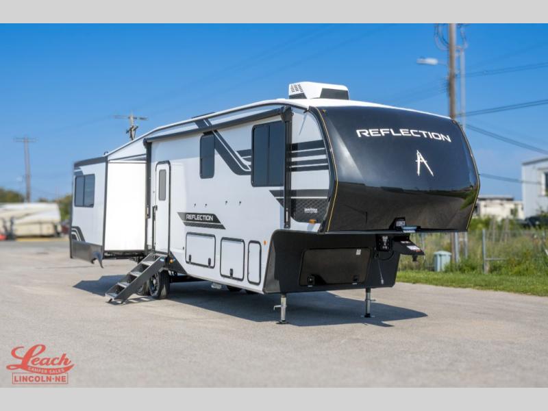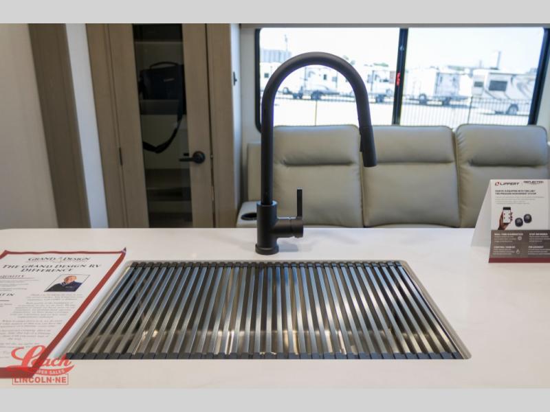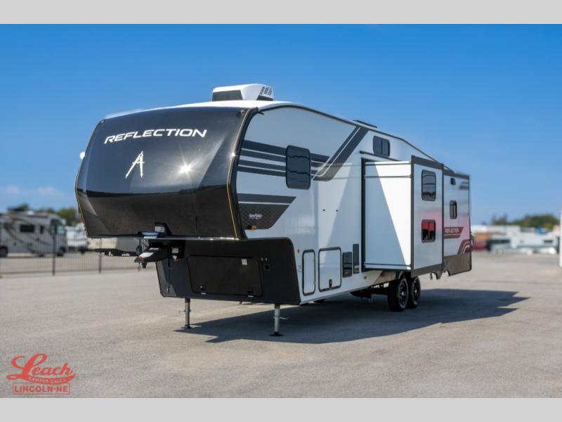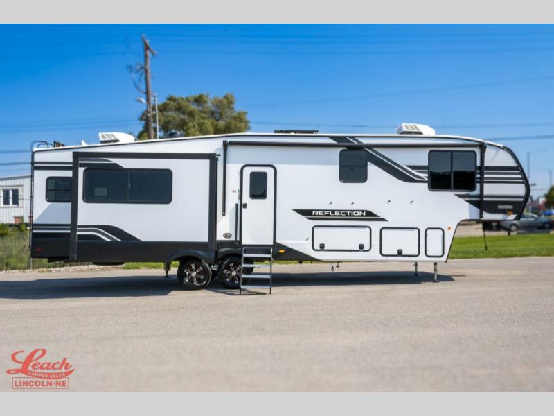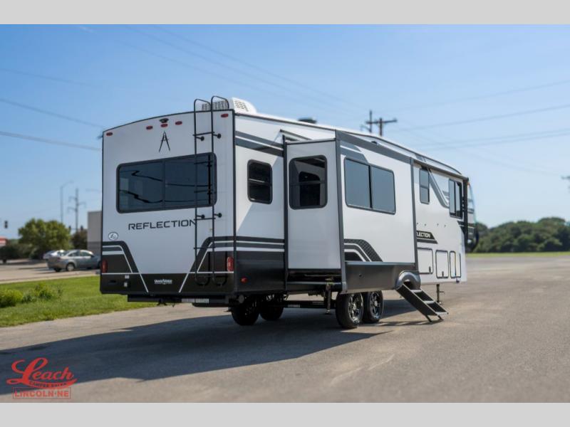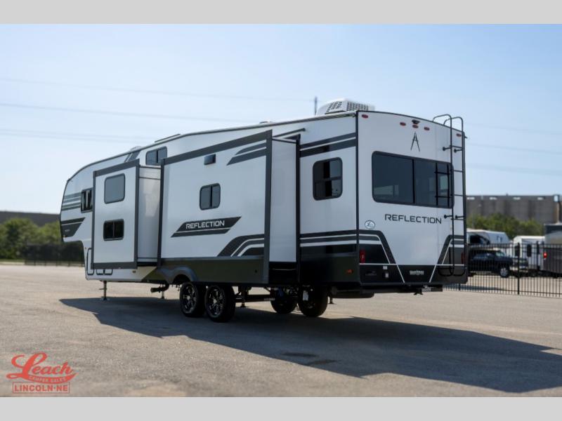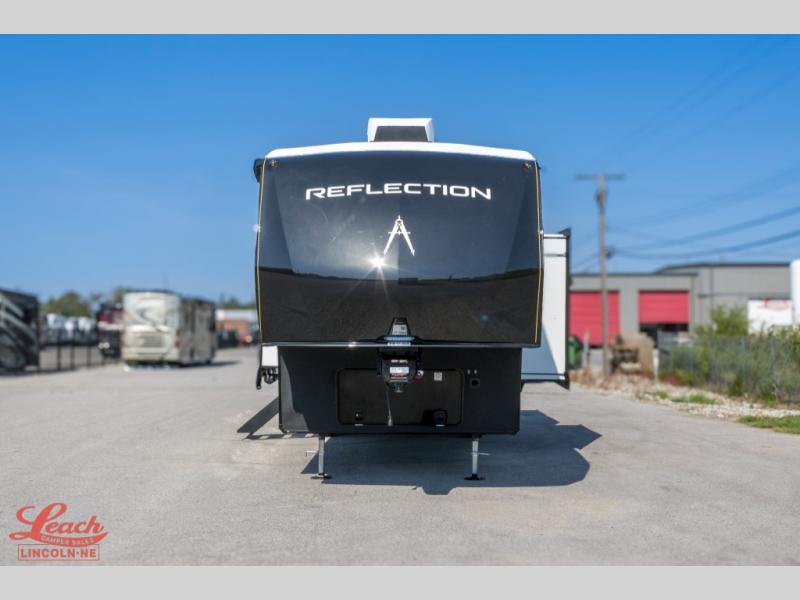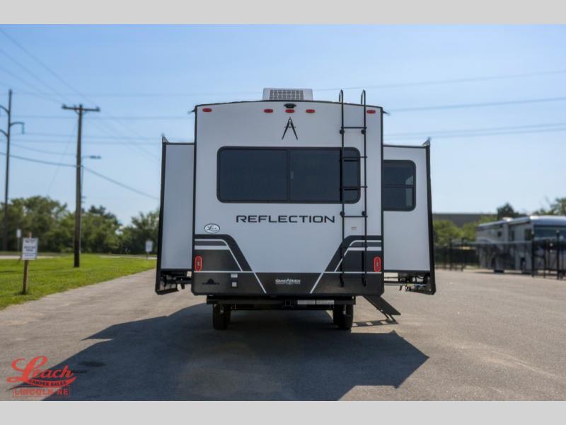 With any Reflection fifth wheel by Grand Design, you will have a solar panel for off-grid camping and a 60 amp charge controller and inverter prep, a Universal All-In-One docking station, unobstructed pass-through storage, and Goodyear Endurance tires. Each is constructed of gel coat exterior sidewalls, residential 5" truss rafters, walk-on roof decking, a fiberglass and radiant foil roof and front cap insulation plus laminated aluminum framed side walls, roof and end walls in slide rooms. Head inside to enjoy residential hardwood cabinet doors, premium Congoleum flooring, a spacious shower with a glass door, and many more comforts!