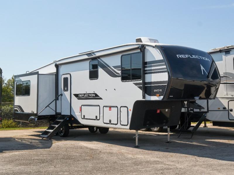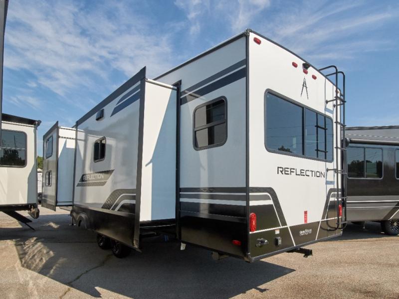 Built for off-grid capability and all-season travel, the Reflection 324MBS includes a solar panel, 60 amp charge controller, and inverter prep. Exterior features like unobstructed pass-through storage, LP quick connect, and Coax TV hookup make setup and outdoor living a breeze. With Goodyear Endurance tires, gel coat sidewalls, and laminated aluminum framing, this fifth wheel is engineered for durability and smooth towing.