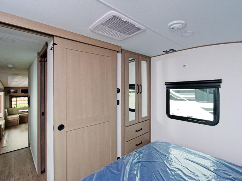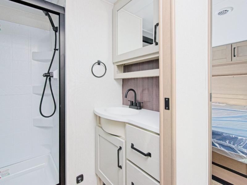 Inside, enjoy upscale finishes like residential hardwood cabinet doors, premium Congoleum flooring, and a glass-door shower for a spa-like experience.