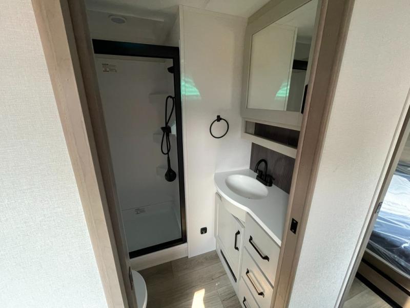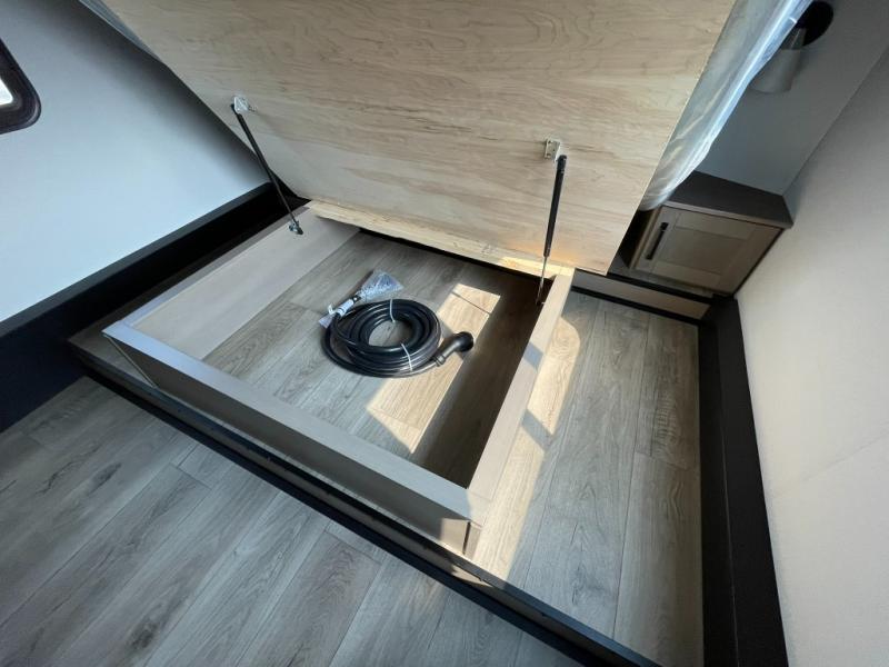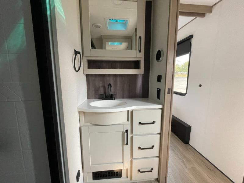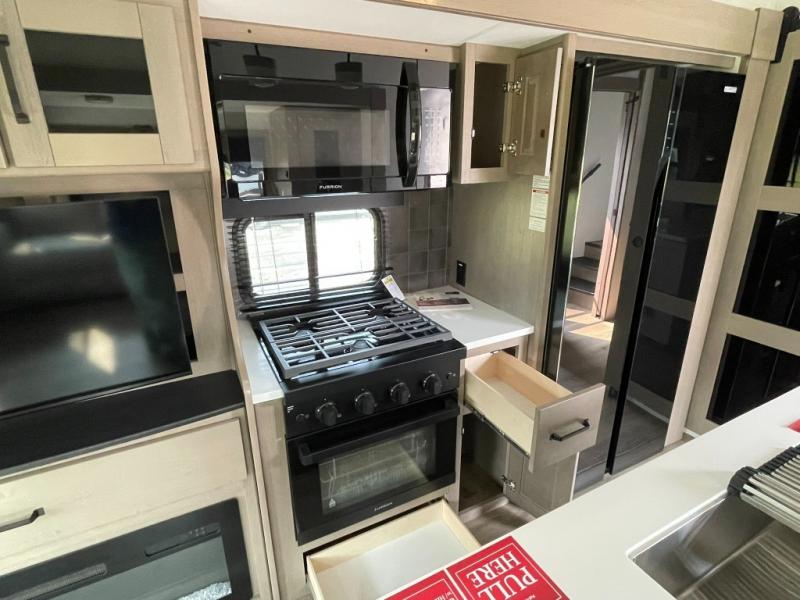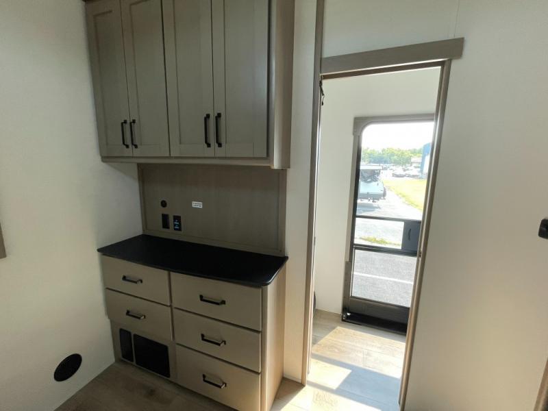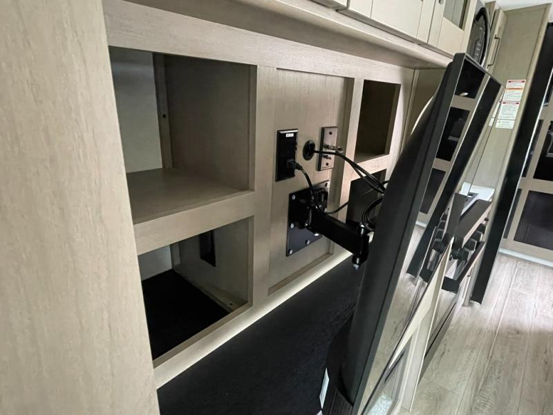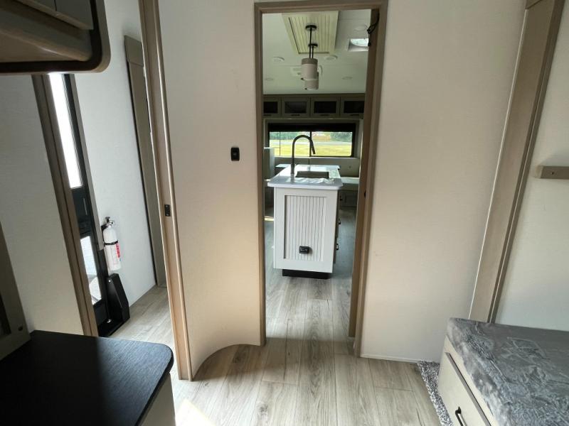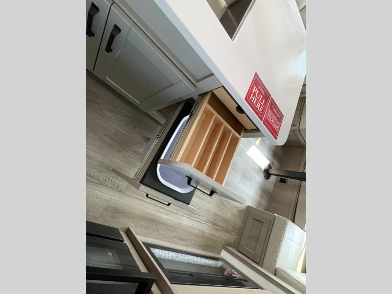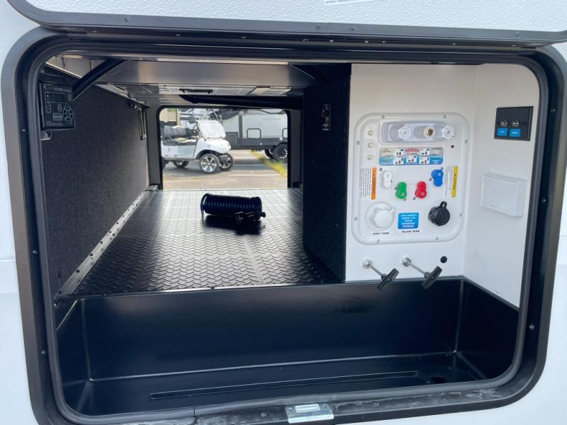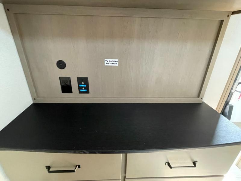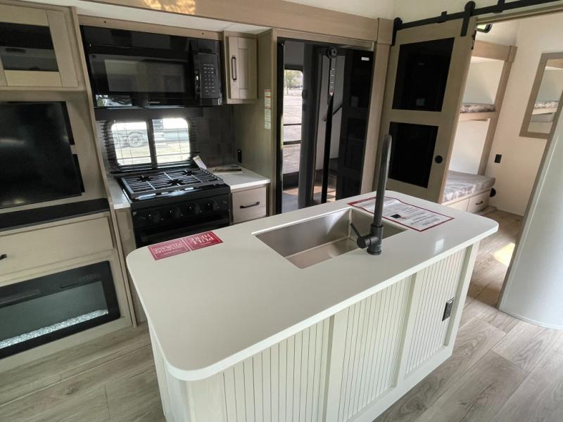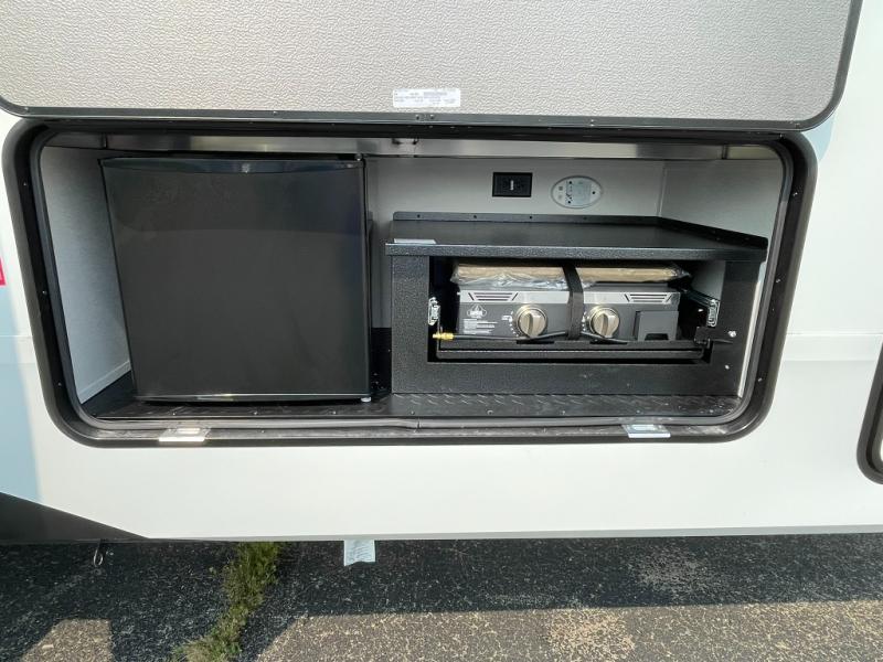 Functional Extras – Kitchen island, exterior spray port, LP quick connect, and coax TV hookup outside for added convenience.