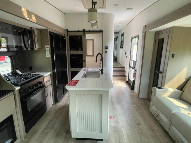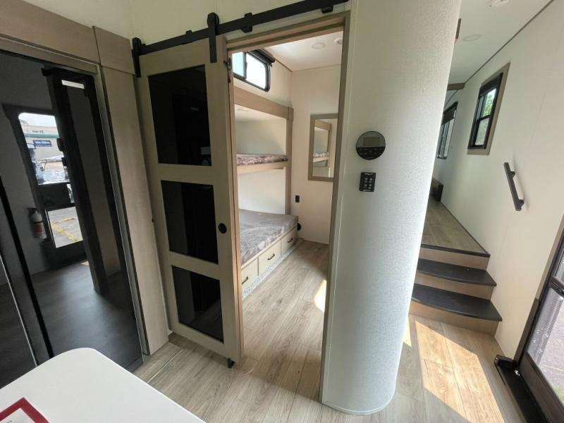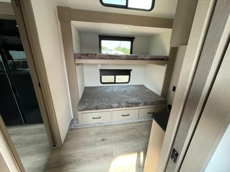Middle Bunkhouse, Walk-Around Bed, Rear Main Living & Kitchen, Outside Kitchen - Campers Inn RV of Louisville 812-282-7718