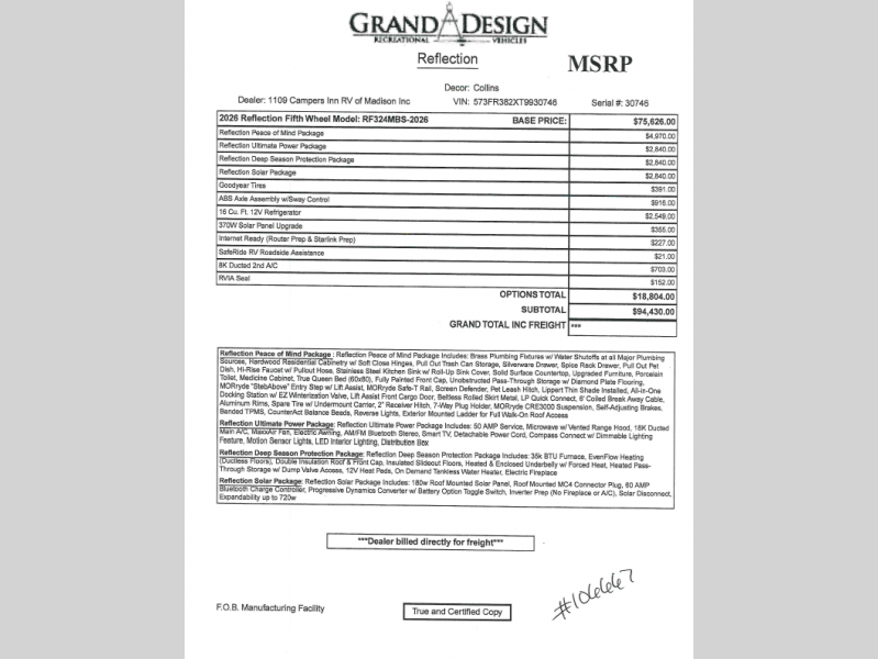A lot of fun and friendly people work at this dealership and they took the stress out of the purchasing process. Our sales person was Kasey and my wife and I both loved her. She answered all our questions and was very straightforward about everything. I was also impressed with the candor of the two technicians they provided during the delivery process. They explained the camper to us and gave us a - Daniel
