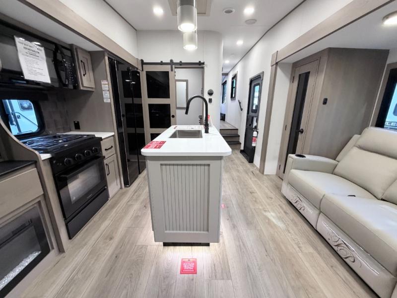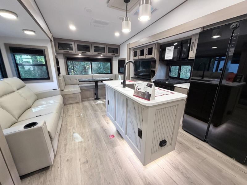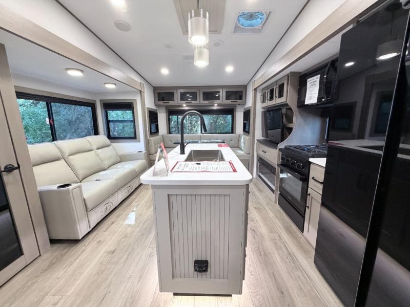 This 324MBS is equipped with an upgraded 370W solar package to enhance off-grid performance, along with an ABS axle assembly with sway control for improved stability and safety on the road. Dual A/C units keep the interior cool in any climate.