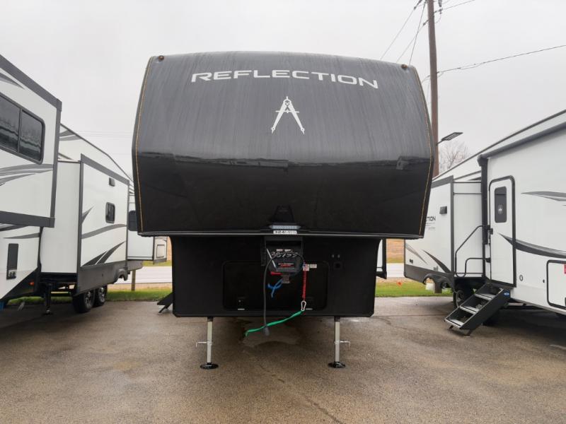 With any Reflection fifth wheel by Grand Design, you will have a solar panel for off-grid camping and a 60 amp charge controller and inverter prep, a Universal All-In-One docking station, unobstructed pass-through storage, and Goodyear Endurance tires. Each is constructed of gel coat exterior sidewalls, residential 5" truss rafters, walk-on roof decking, a fiberglass and radiant foil roof and front cap insulation plus laminated aluminum framed side walls, roof and end walls in slide rooms. Head inside to enjoy residential hardwood cabinet doors, premium Congoleum flooring, a spacious shower with a glass door, and many more comforts!