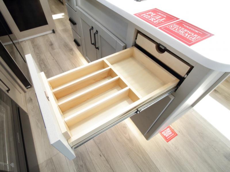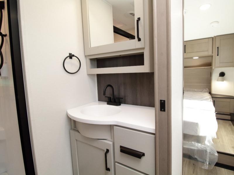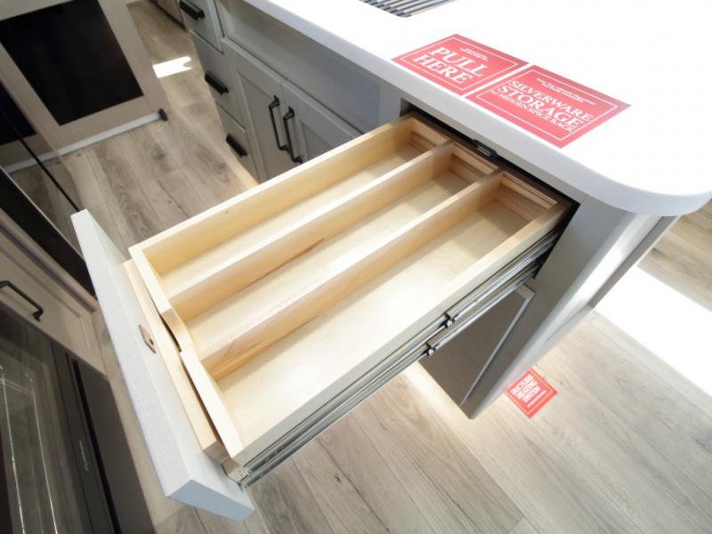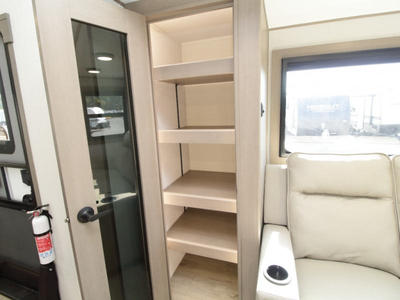 Step inside and appreciate the residential hardwood cabinet doors, premium Congoleum flooring, and spacious shower with glass door. Every inch of the Reflection 324MBS is crafted with high-end finishes and smart storage solutions, delivering both beauty and practicality.