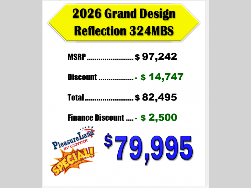 New 2026 Grand Design Reflection 324MBS Fifth Wheel
