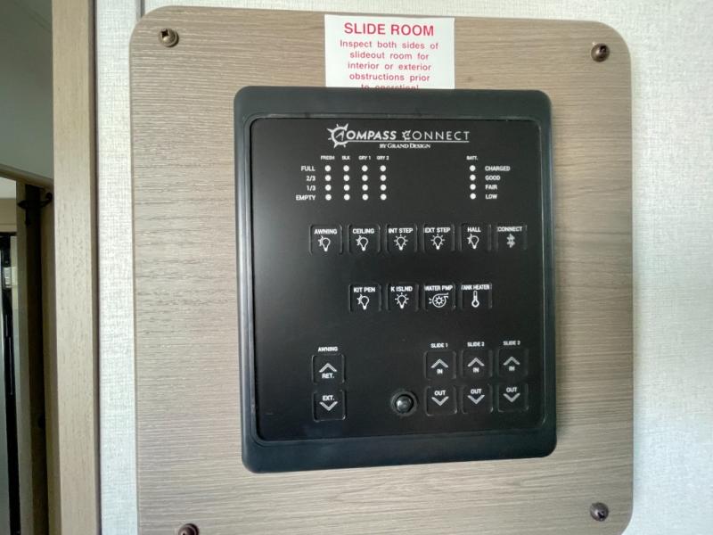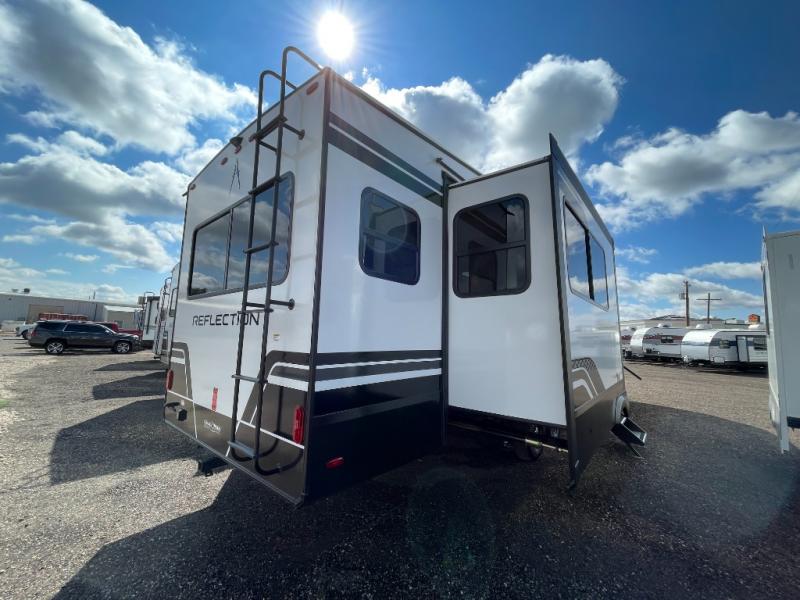 With any Reflection fifth wheel by Grand Design, you will have a solar panel for off-grid camping and a 60 amp charge controller and inverter prep, a Universal All-In-One docking station, unobstructed pass-through storage, and Goodyear Endurance tires. Each is constructed of gel coat exterior sidewalls, residential 5" truss rafters, walk-on roof decking, a fiberglass and radiant foil roof and front cap insulation plus laminated aluminum framed side walls, roof and end walls in slide rooms. Head inside to enjoy residential hardwood cabinet doors, premium Congoleum flooring, a spacious shower with a glass door, and many more comforts!