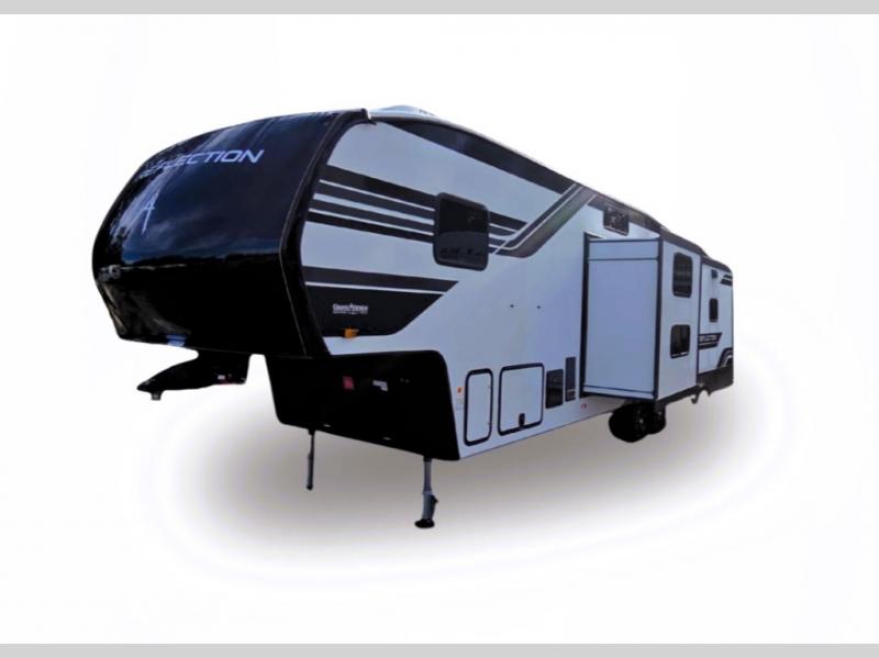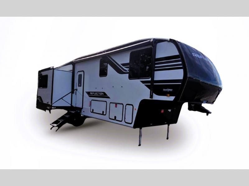 With any Reflection fifth wheel by Grand Design, you will have a solar panel for off-grid camping and a 60 amp charge controller and inverter prep, a Universal All-In-One docking station, unobstructed pass-through storage, and Goodyear Endurance tires. Each is constructed of gel coat exterior sidewalls, residential 5" truss rafters, walk-on roof decking, a fiberglass and radiant foil roof and front cap insulation plus laminated aluminum framed side walls, roof and end walls in slide rooms. Head inside to enjoy residential hardwood cabinet doors, premium Congoleum flooring, a spacious shower with a glass door, and many more comforts!