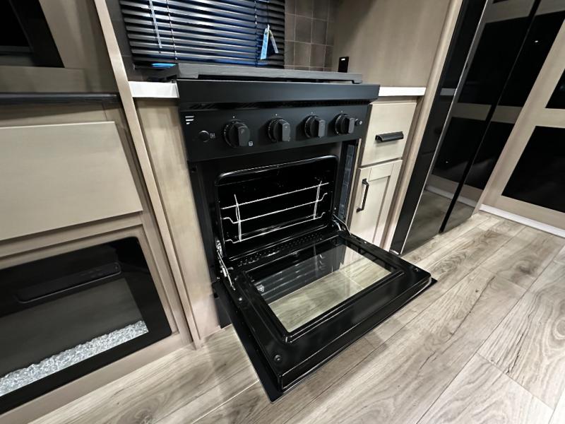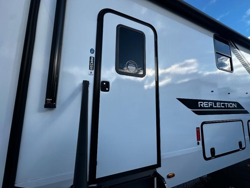 Up front, the private master suite delivers true comfort with a queen bed, generous wardrobe storage, washer/dryer prep, and a beautifully designed bathroom with a walk-in shower and linen storage. Built with Grand Design’s commitment to quality, the Reflection 324MBS includes a high-gloss fiberglass exterior, robust insulation for extended-season camping, and industry-leading construction standards that ensure durability and long-term value.