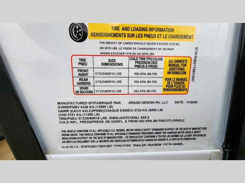 New 2026 Grand Design Reflection 324MBS Fifth Wheel