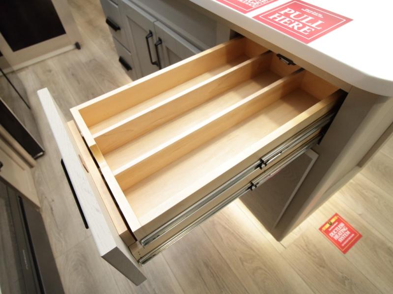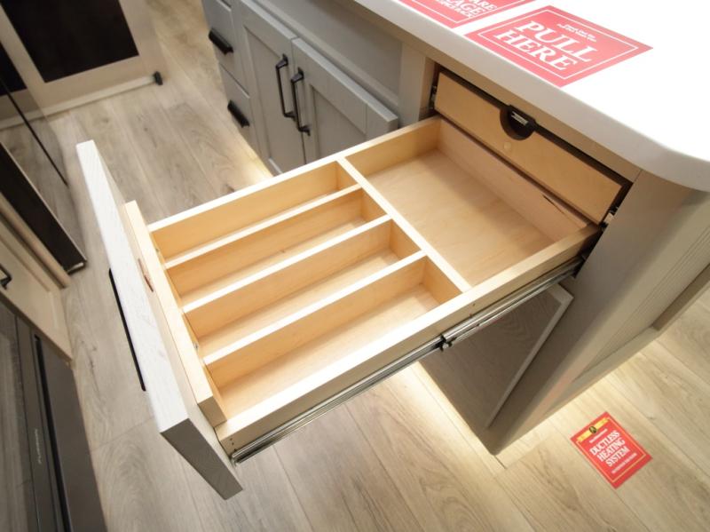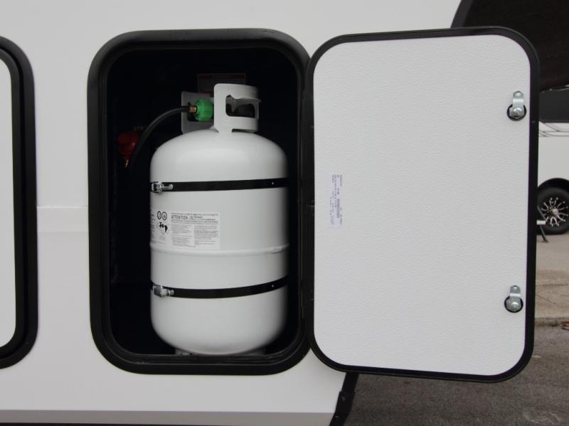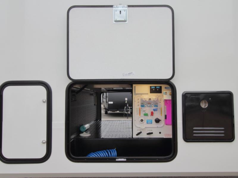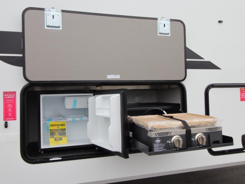 Exterior Kitchen – Includes griddle, 1.6 cu. ft. refrigerator, LP quick connect, Coax TV hookup, and spray port for outdoor fun.
