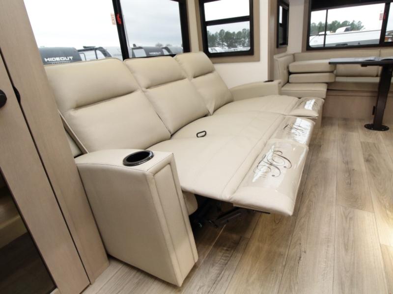 Rear Living Area – 78" triple theater seats and a 92" U-shaped lounge with table provide premium comfort for relaxing or entertaining.