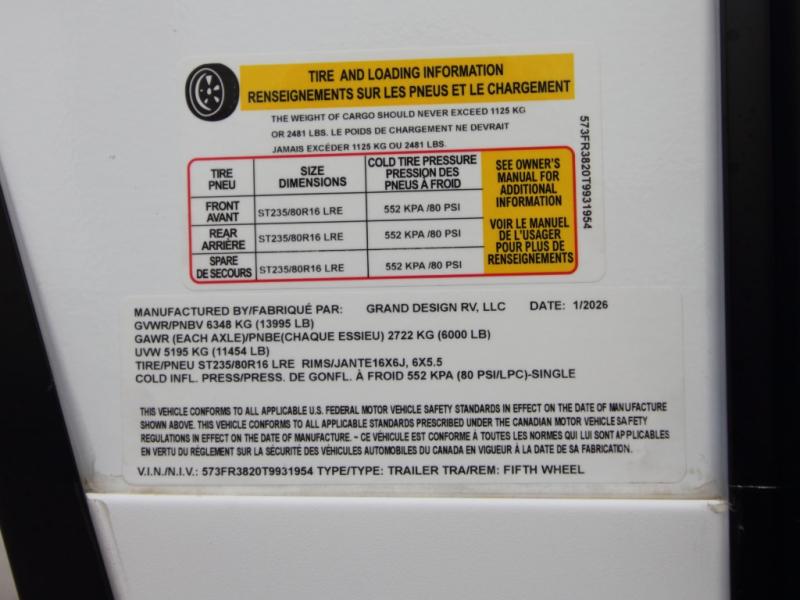 New 2026 Grand Design Reflection 324MBS Fifth Wheel