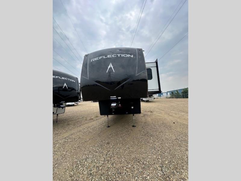 With any Reflection fifth wheel by Grand Design, you will have a solar panel for off-grid camping and a 60 amp charge controller and inverter prep, a Universal All-In-One docking station, unobstructed pass-through storage, and Goodyear Endurance tires. Each is constructed of gel coat exterior sidewalls, residential 5" truss rafters, walk-on roof decking, a fiberglass and radiant foil roof and front cap insulation plus laminated aluminum framed side walls, roof and end walls in slide rooms. Head inside to enjoy residential hardwood cabinet doors, premium Congoleum flooring, a spacious shower with a glass door, and many more comforts!