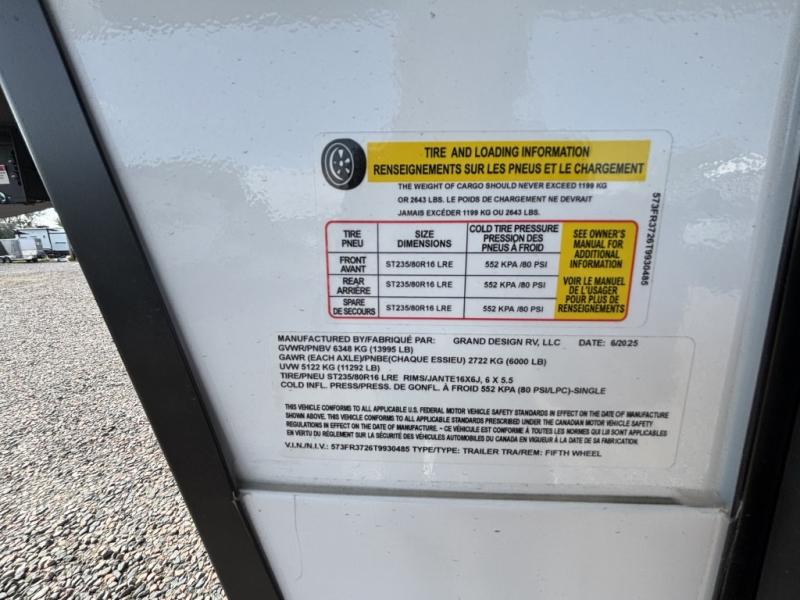 New 2026 Grand Design Reflection 337RLS Fifth Wheel